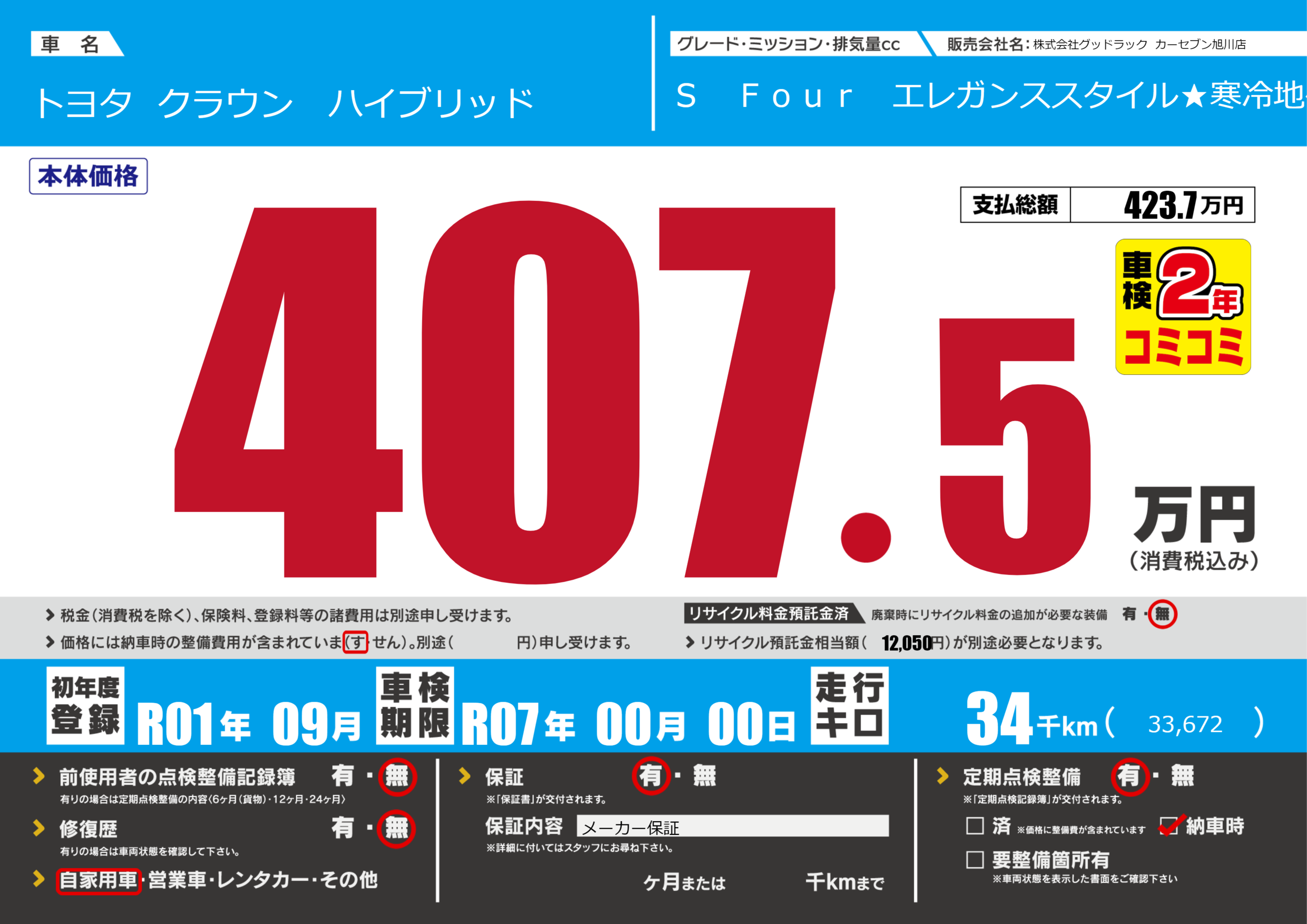 | 車検制限 | R07年 00月 00日 | ||