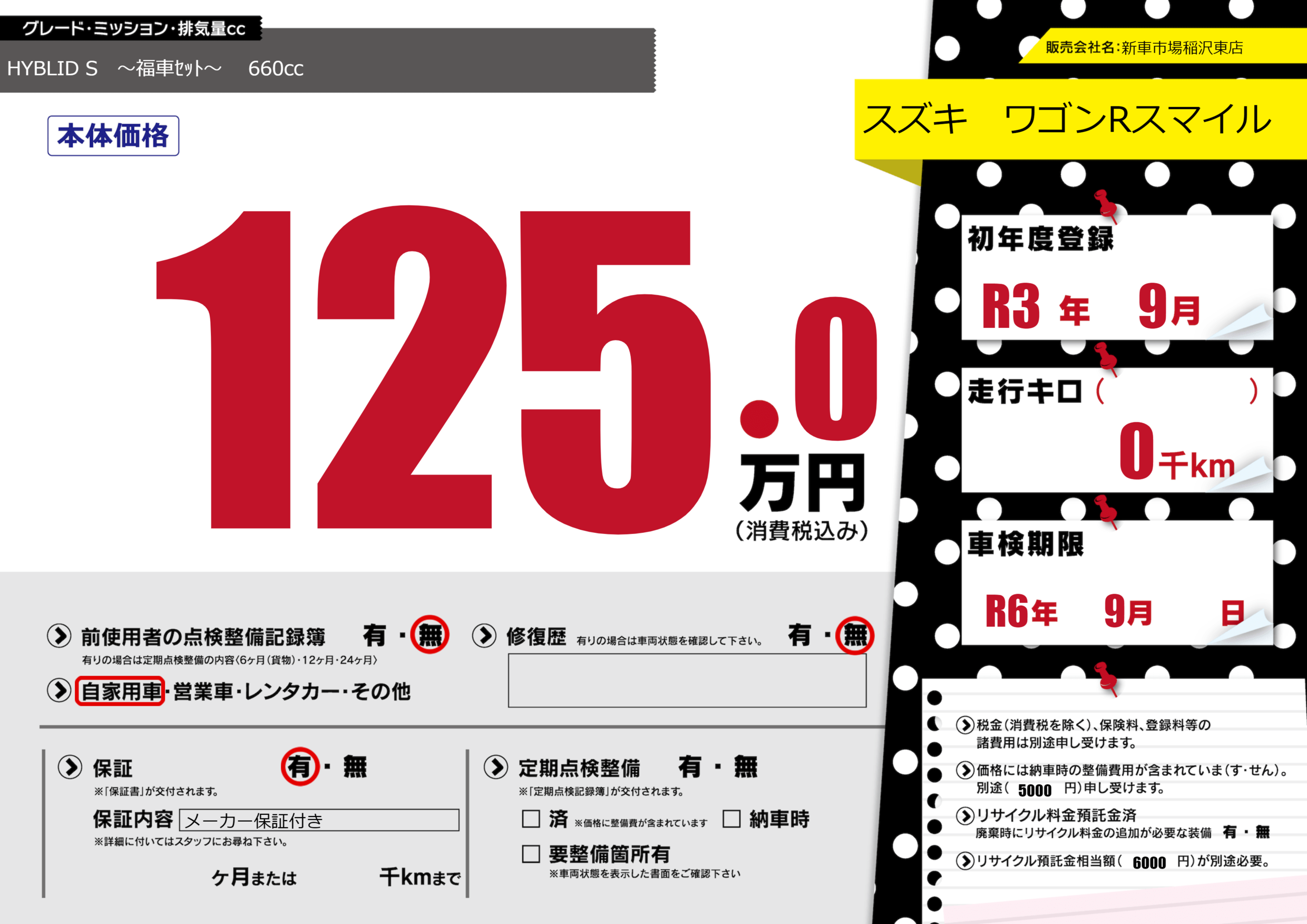 | 車検制限 | R6年 9月 - 日 | ||