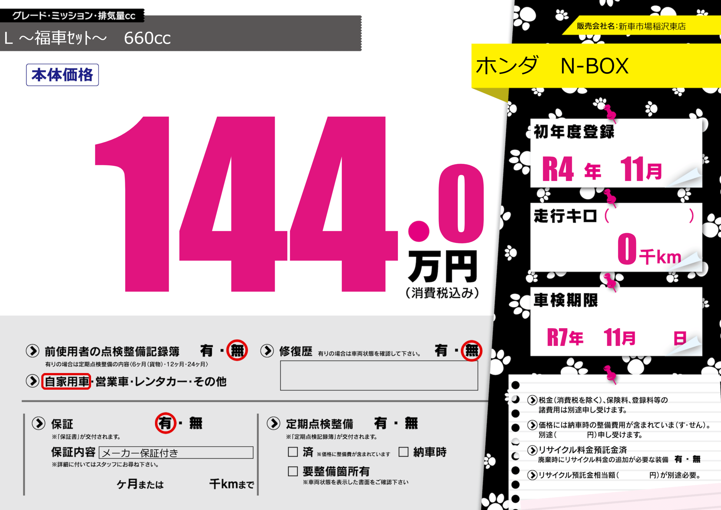 | 走行キロ | - | 初年度登録 | R4年11月 |