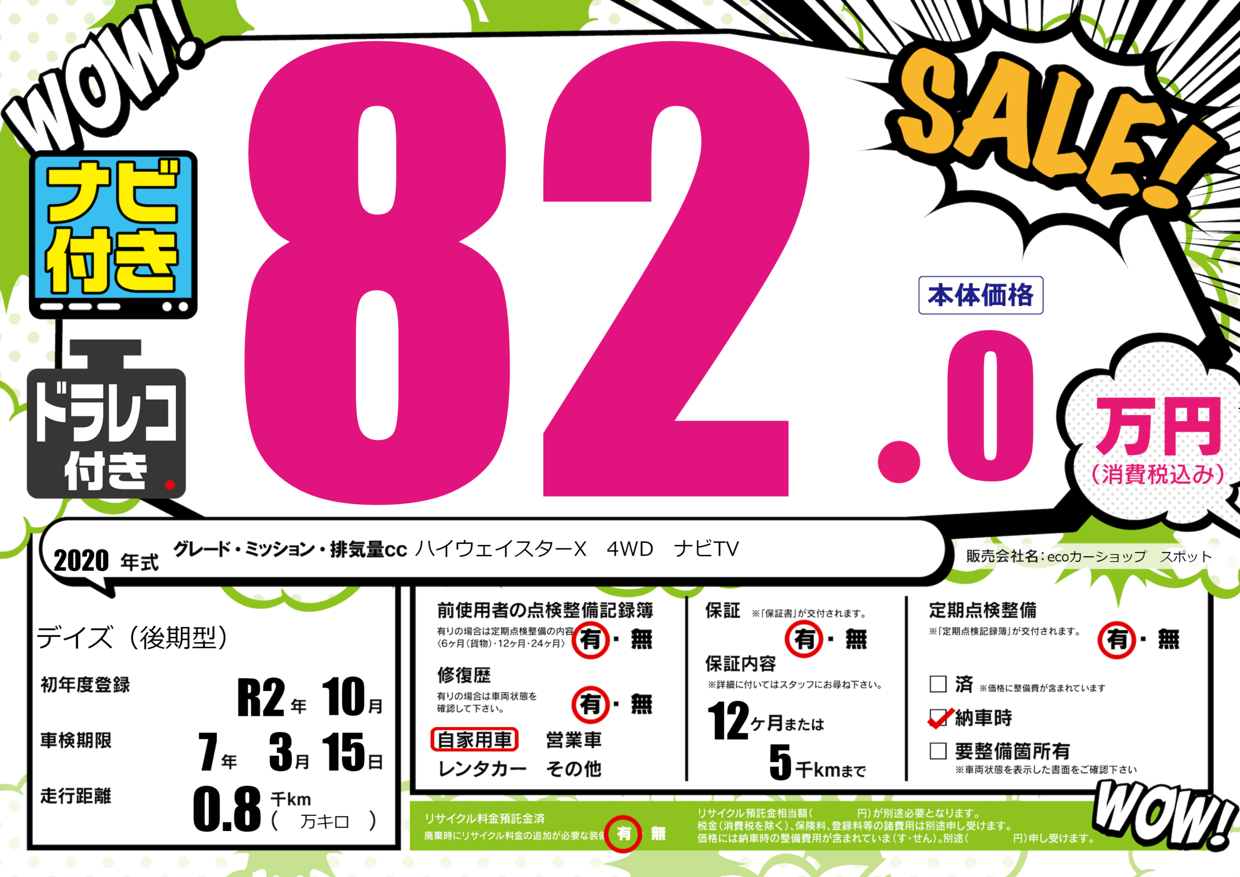 | 車名 | デイズ(後期型) | グレード ミッション 排気量 |