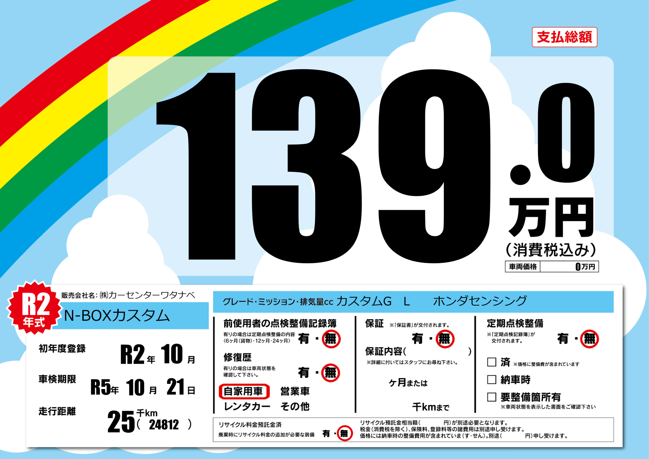 | 車名 | N-BOXカスタム | グレード ミッション 排気量 |