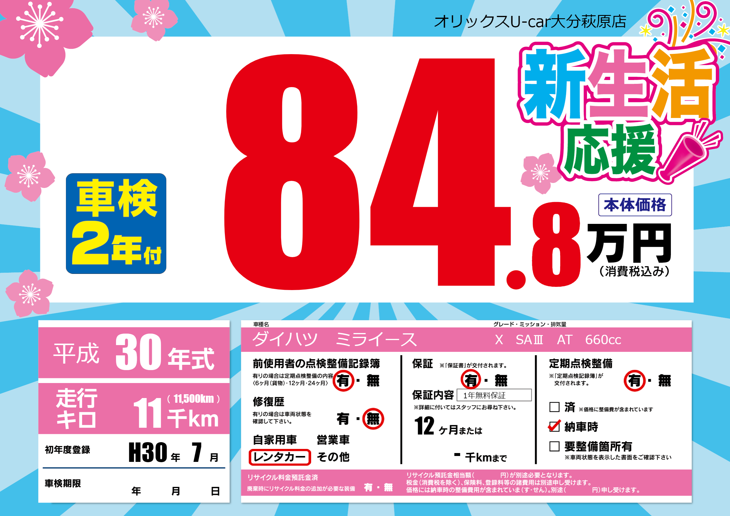 | 初年度登録 | H30年7月 | ||