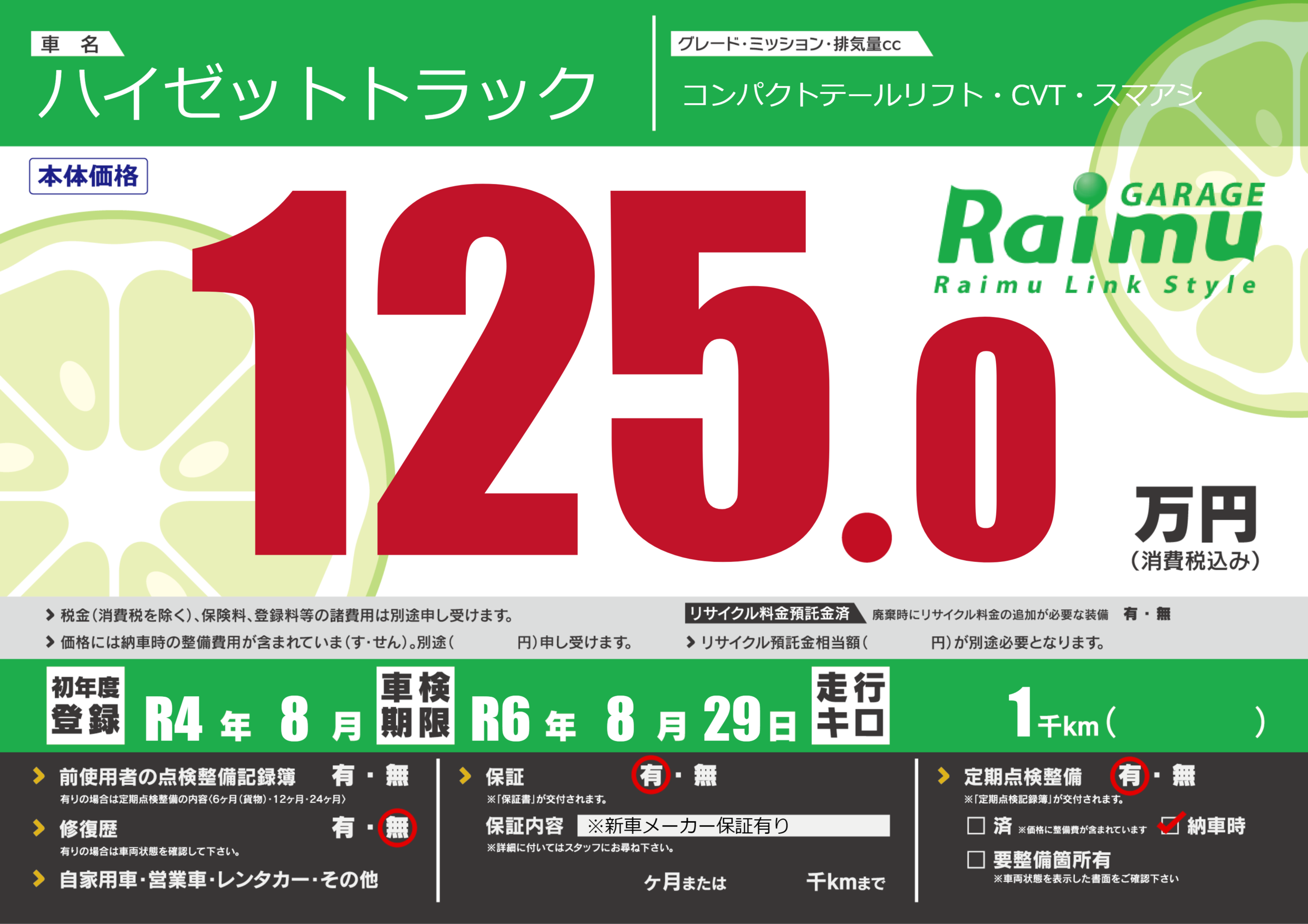 なし | 車検制限 | R6年8月29月 |