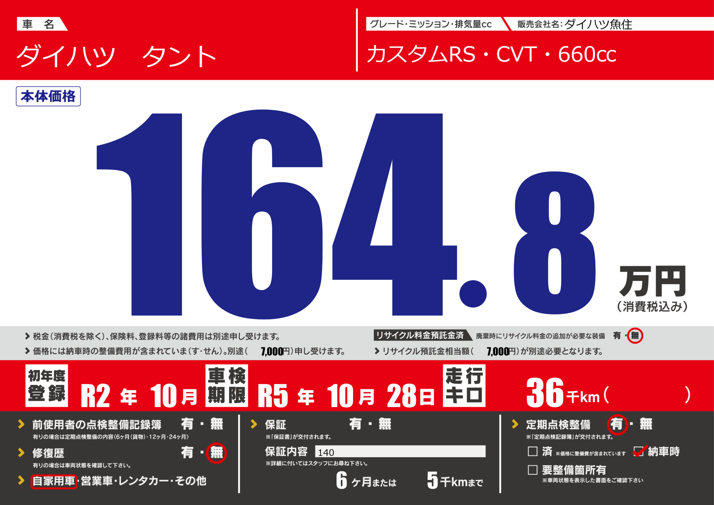 車検制限 | R5年10月28月 |