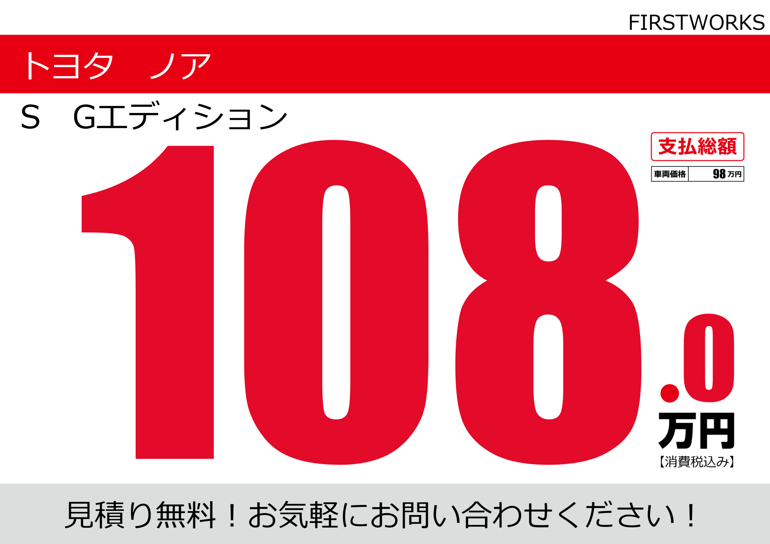 | 車名 | トヨタ ノア | グレード ミッション 排気量 |