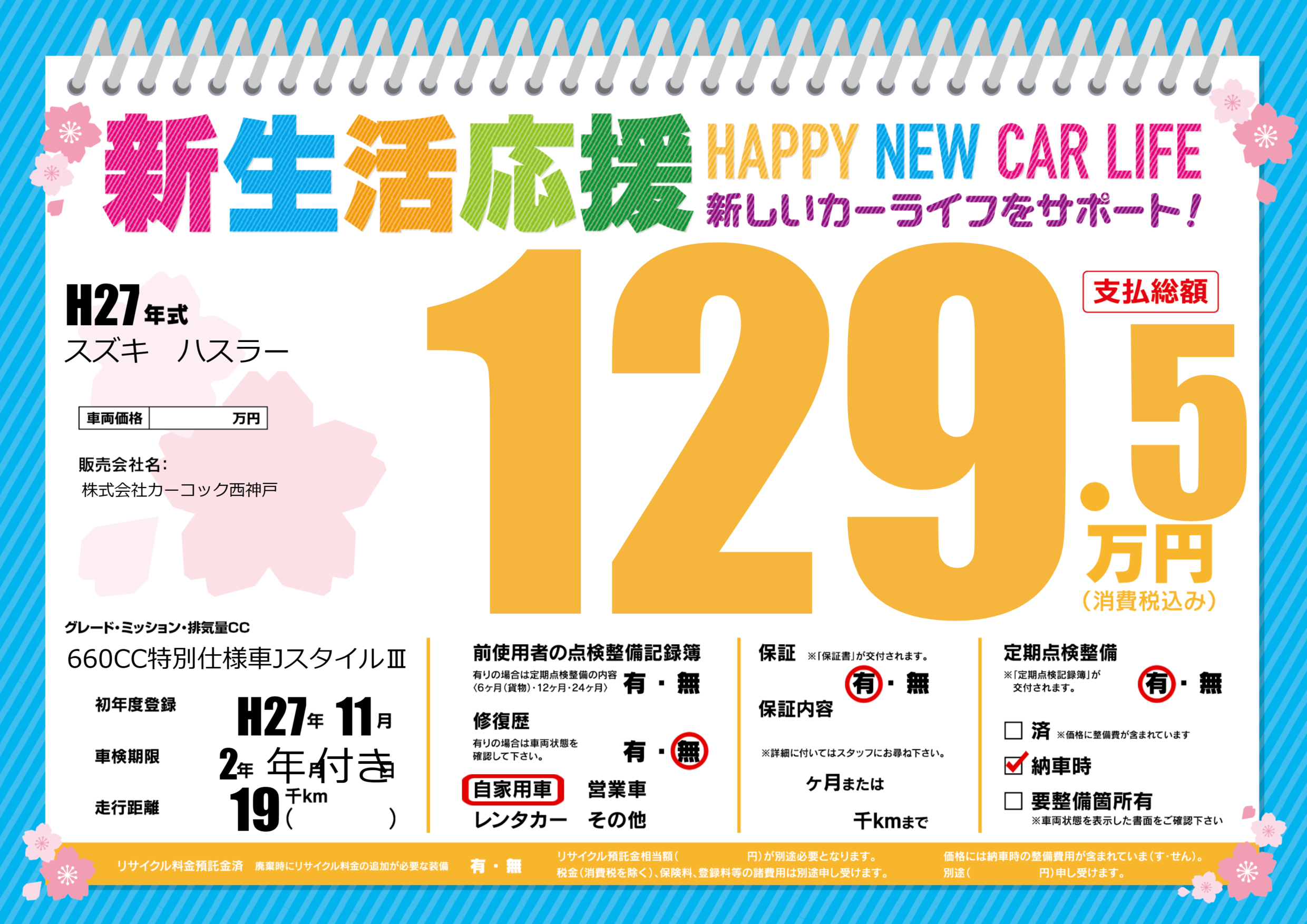 | 定期点検整備 | 定期点検整備あり 納車時あり | ||
