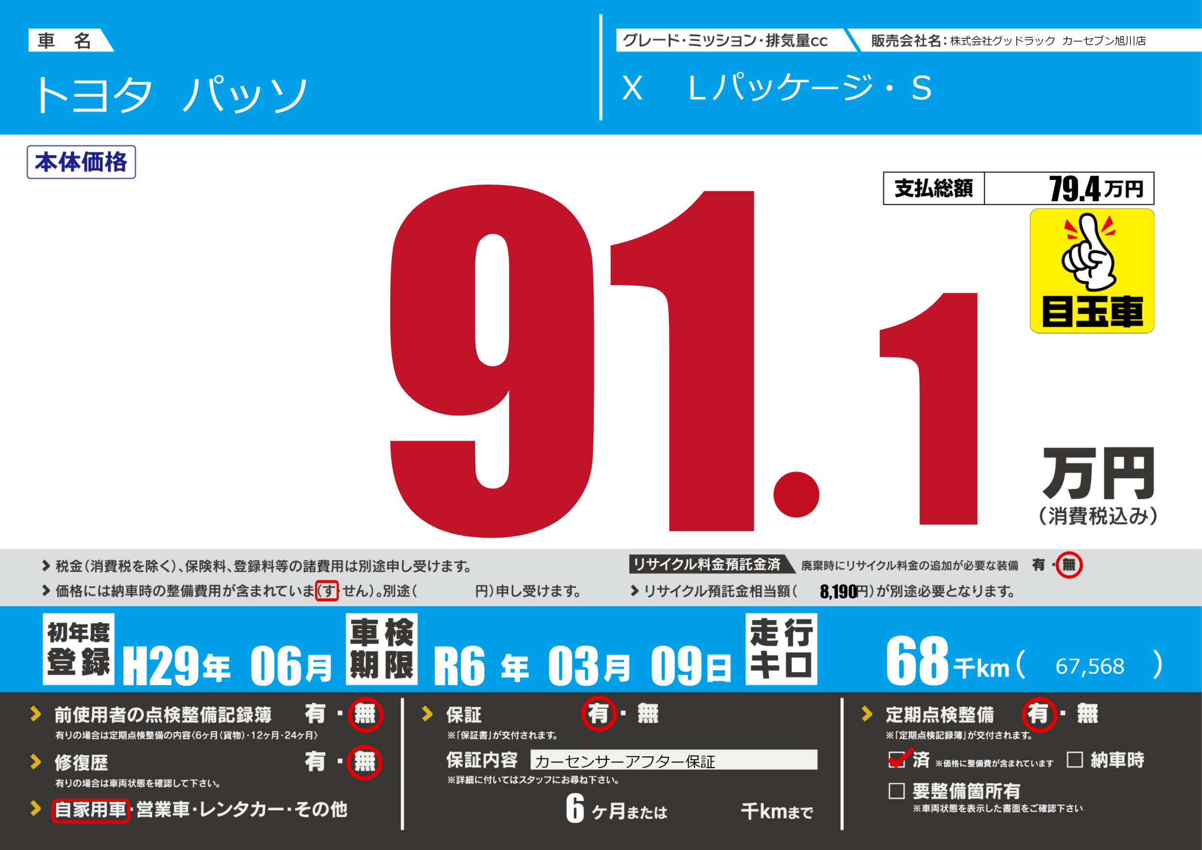 | 定期点検整備 | 定期点検整備あり 定期点検整備済み | ||