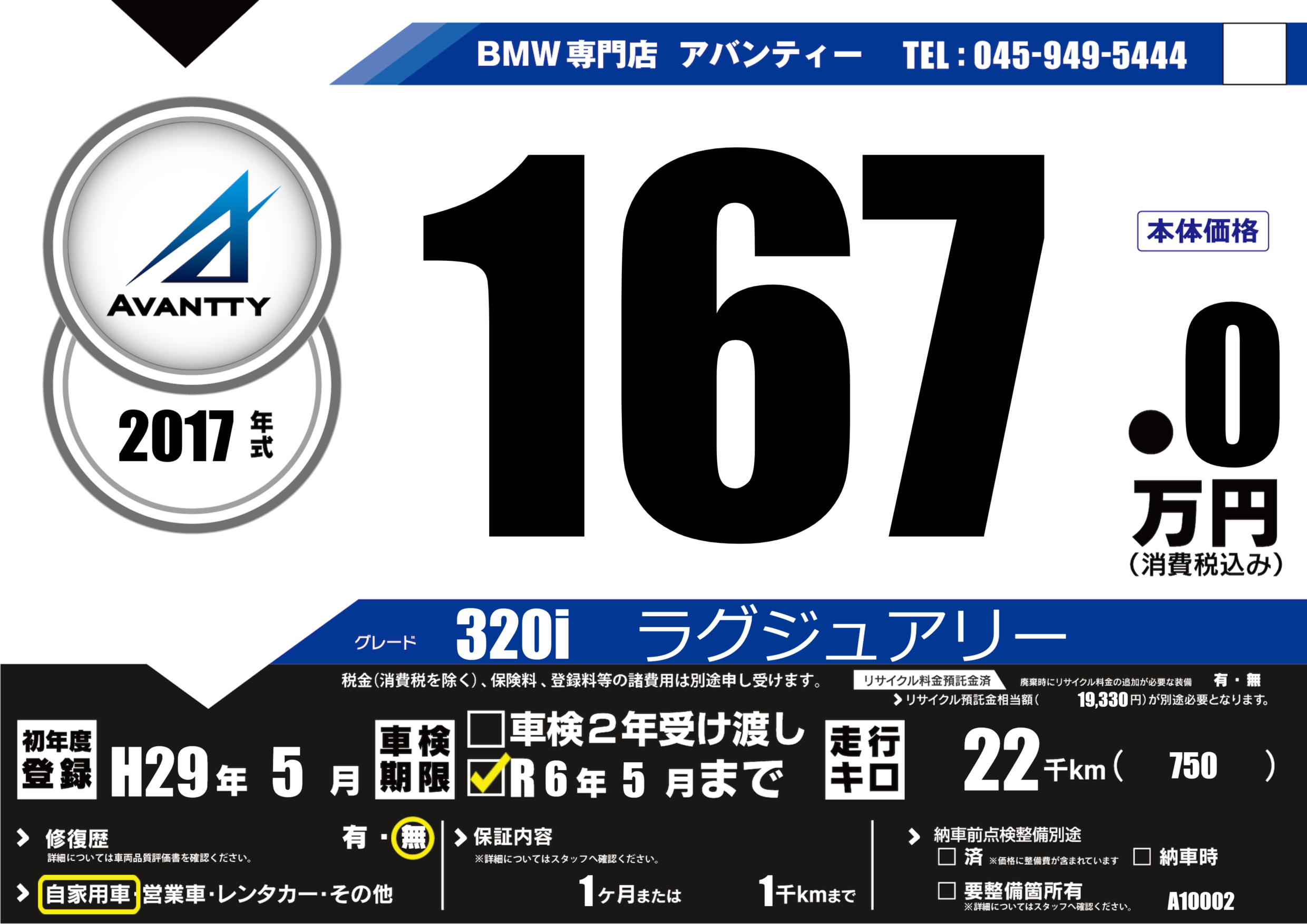| 走行キロ | 2.2万km | 初年度登録 | H29年5月 |
