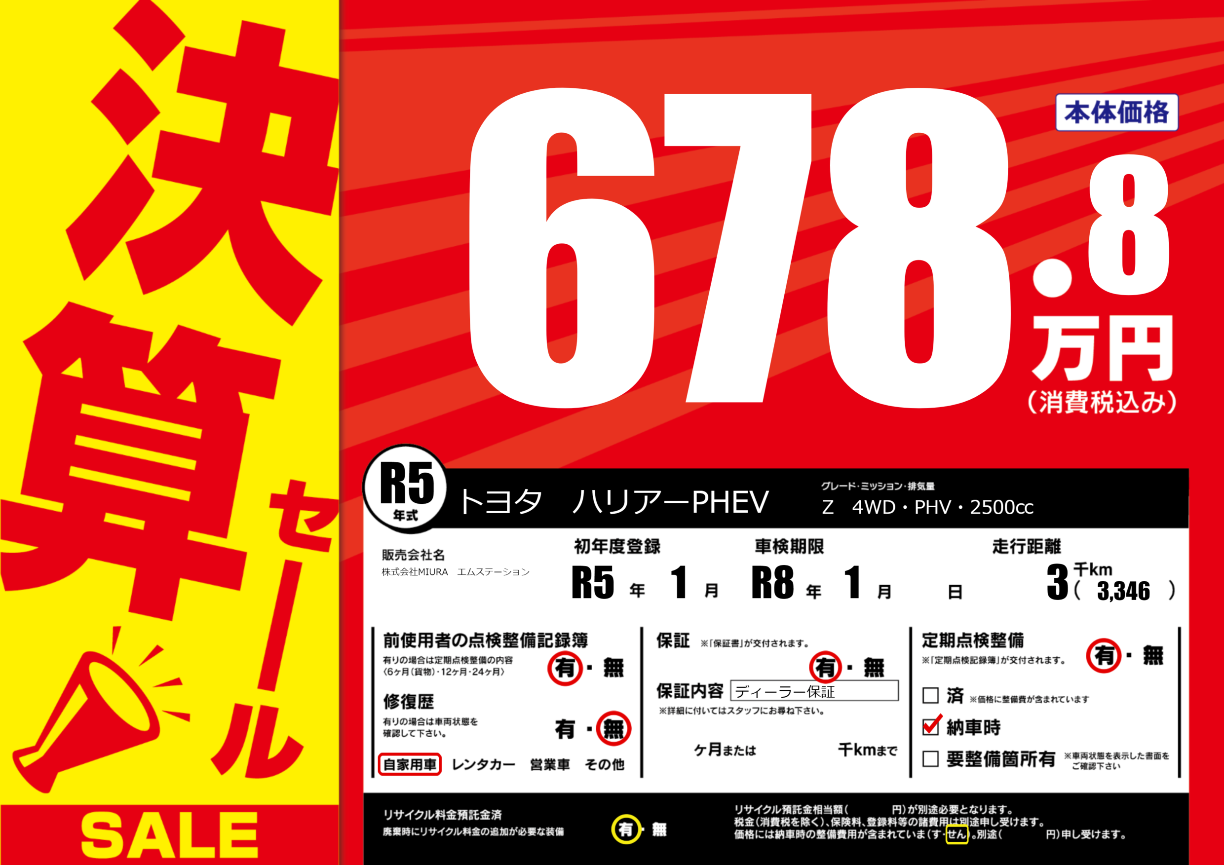 | 車名 | トヨタ ハリアーPHEV | グレード ミッション 排気量 |