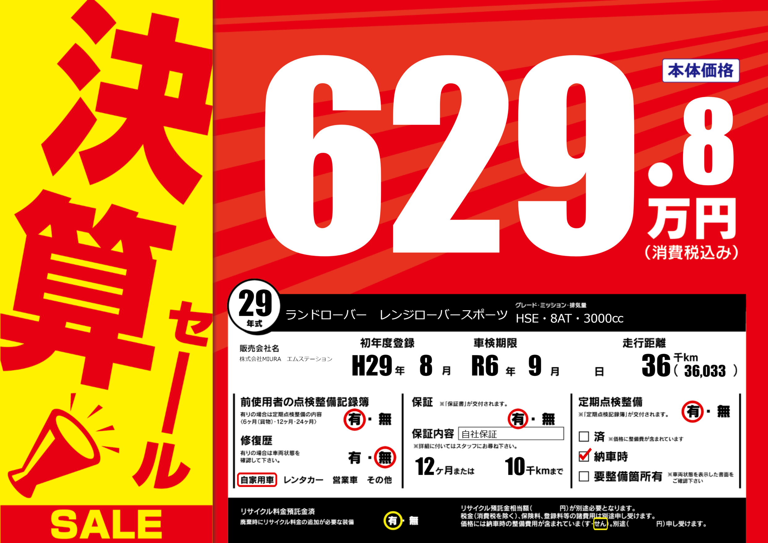 | 車検制限 | R6年 9月 - 日 | ||