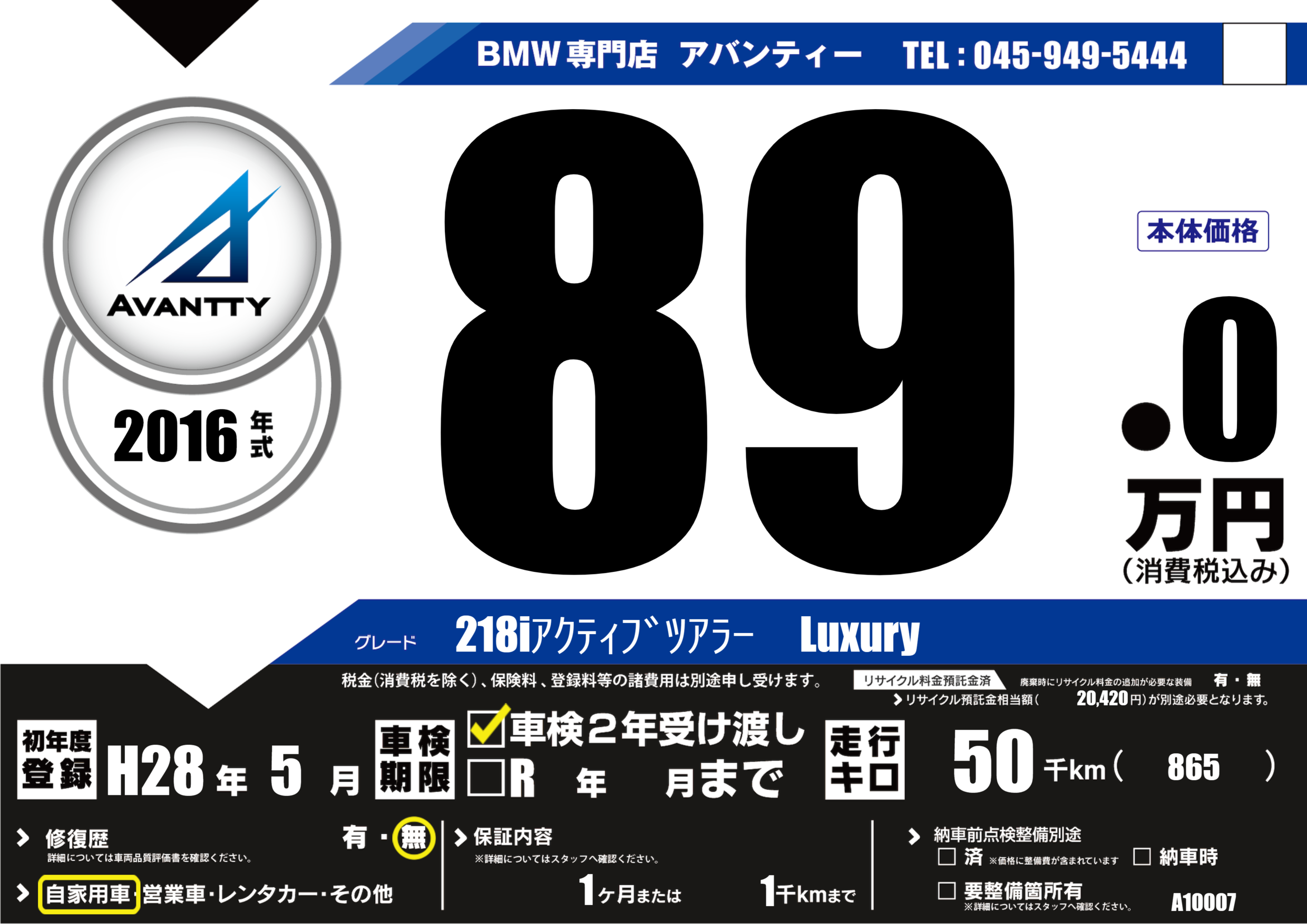 | 走行キロ | 5万km | 初年度登録 | H28年5月 |