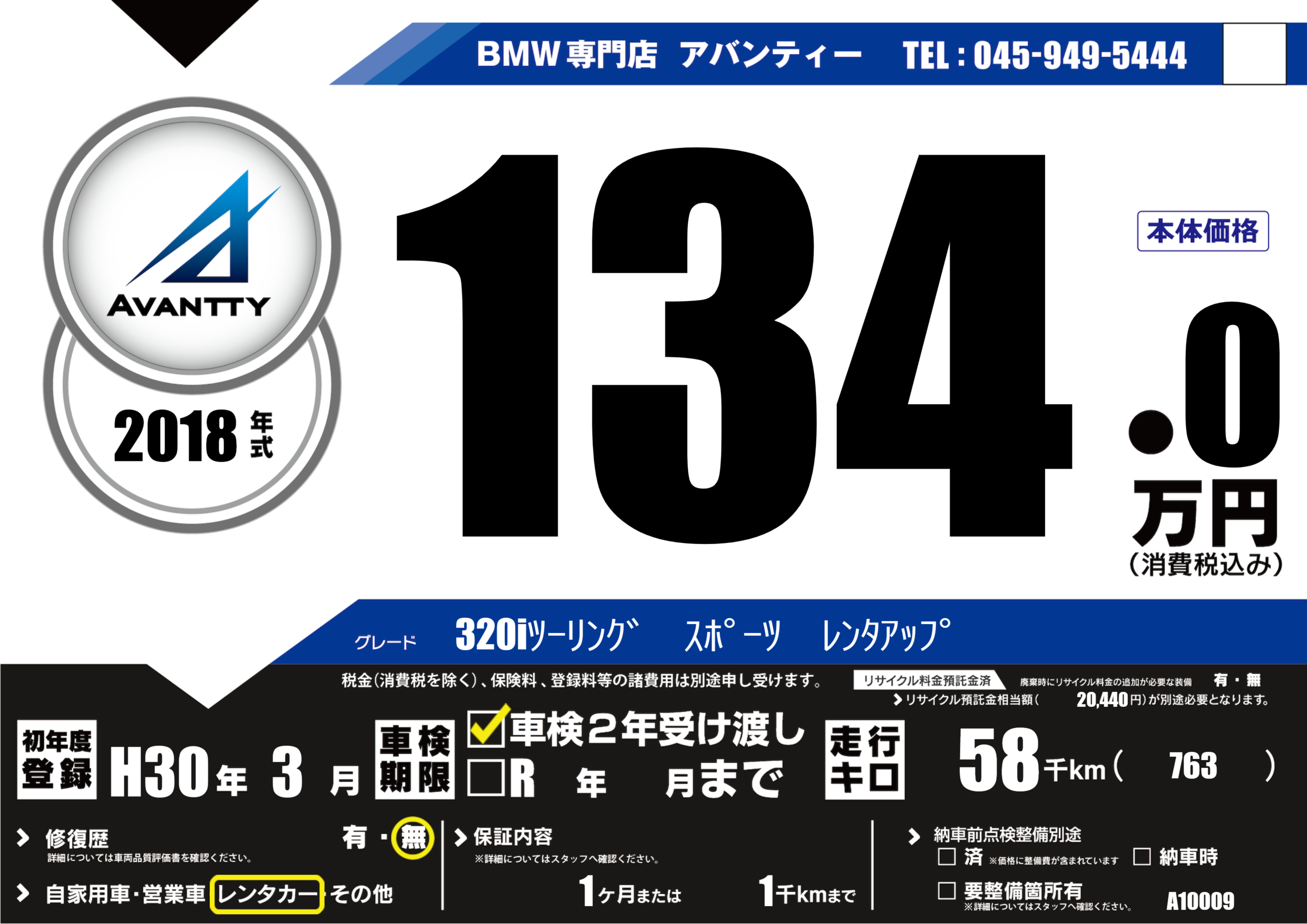 | 走行キロ | 5.8万km | 初年度登録 | H30年3月 |