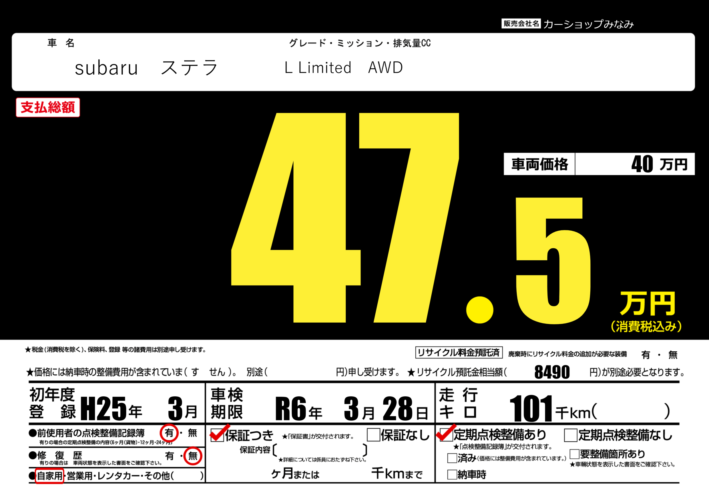 | 定期点検整備 | 定期点検整備あり | ||