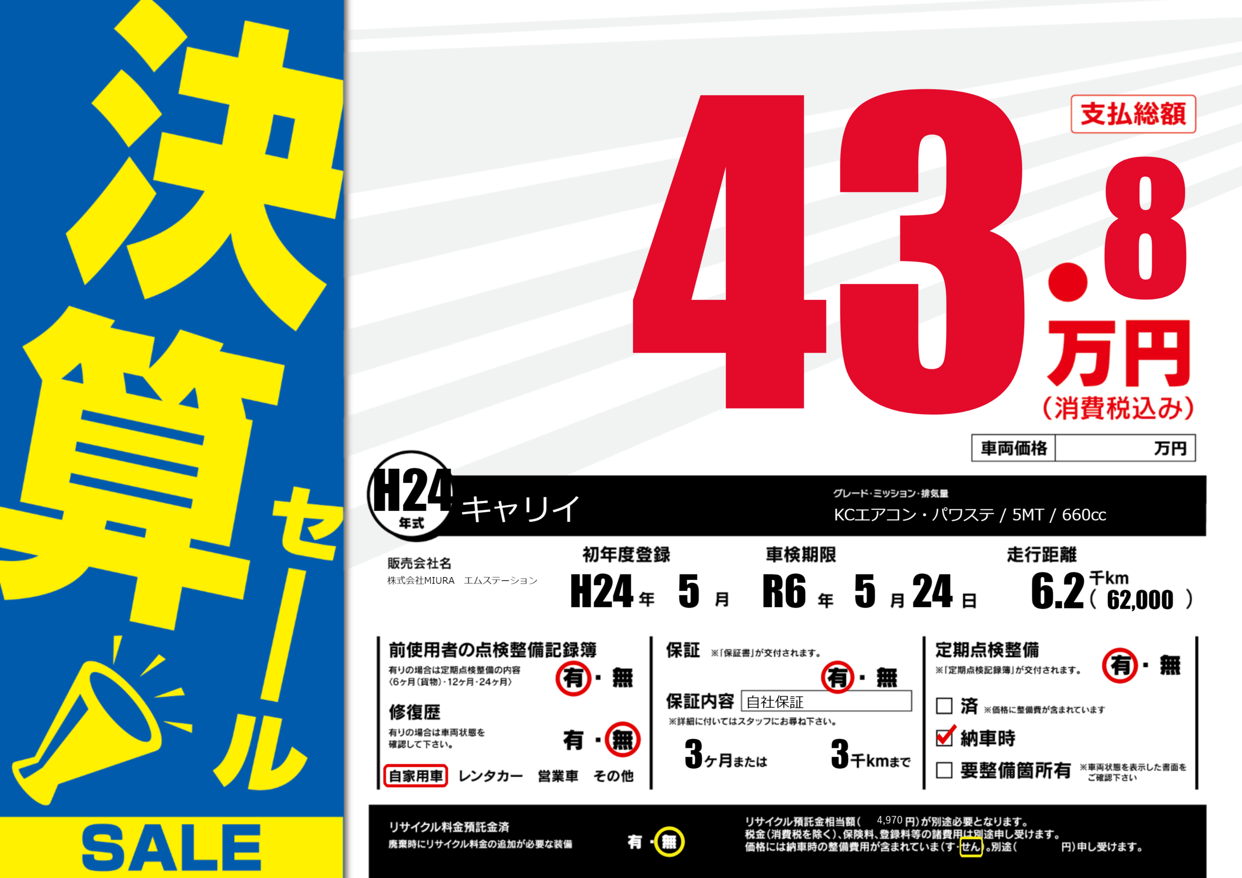 | 車名 | キャリイ | グレード ミッション 排気量 |