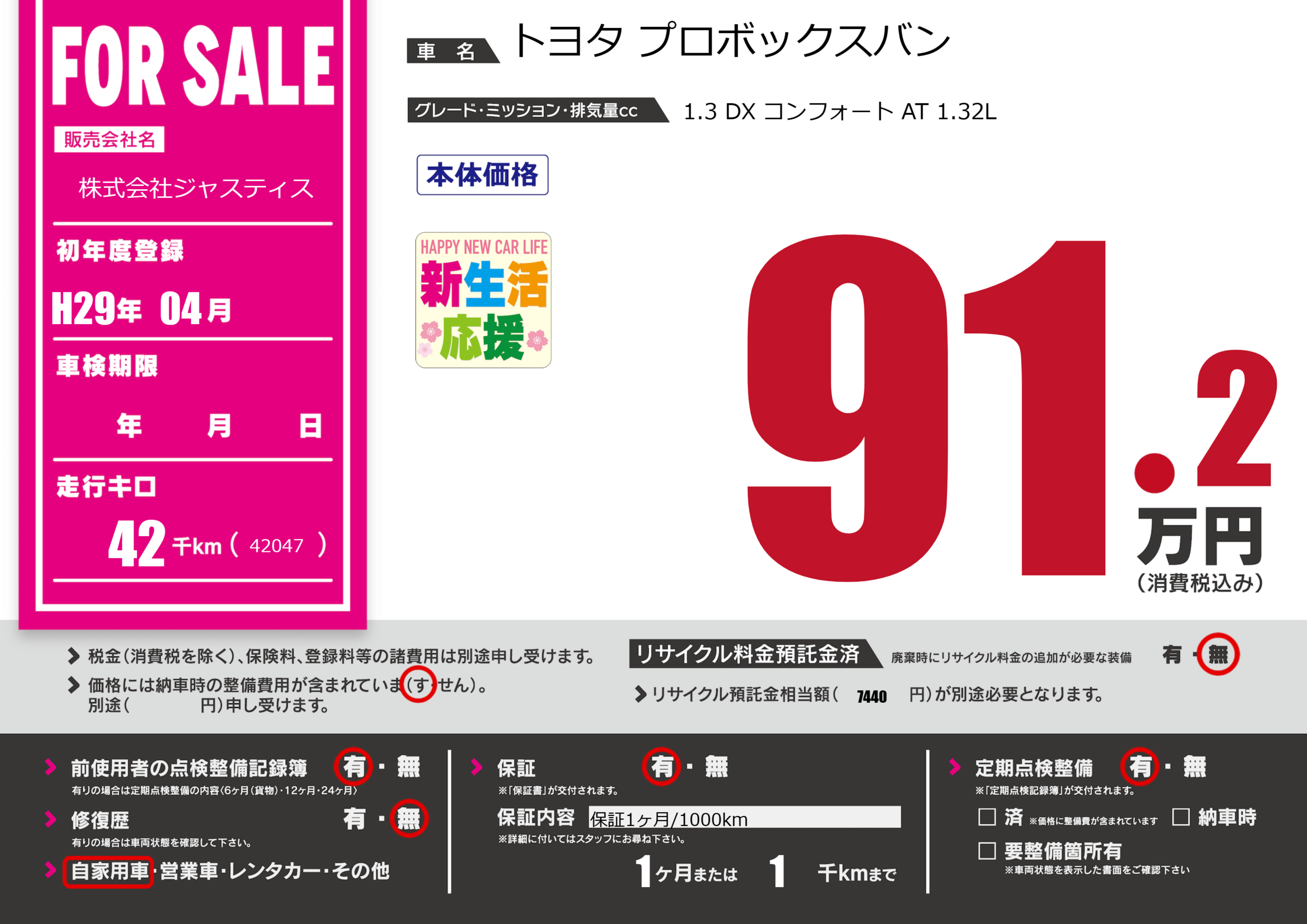 保証付き 保証内容(保証1ヶ月/1000km) 1ヶ月または(1)千kmまで |
