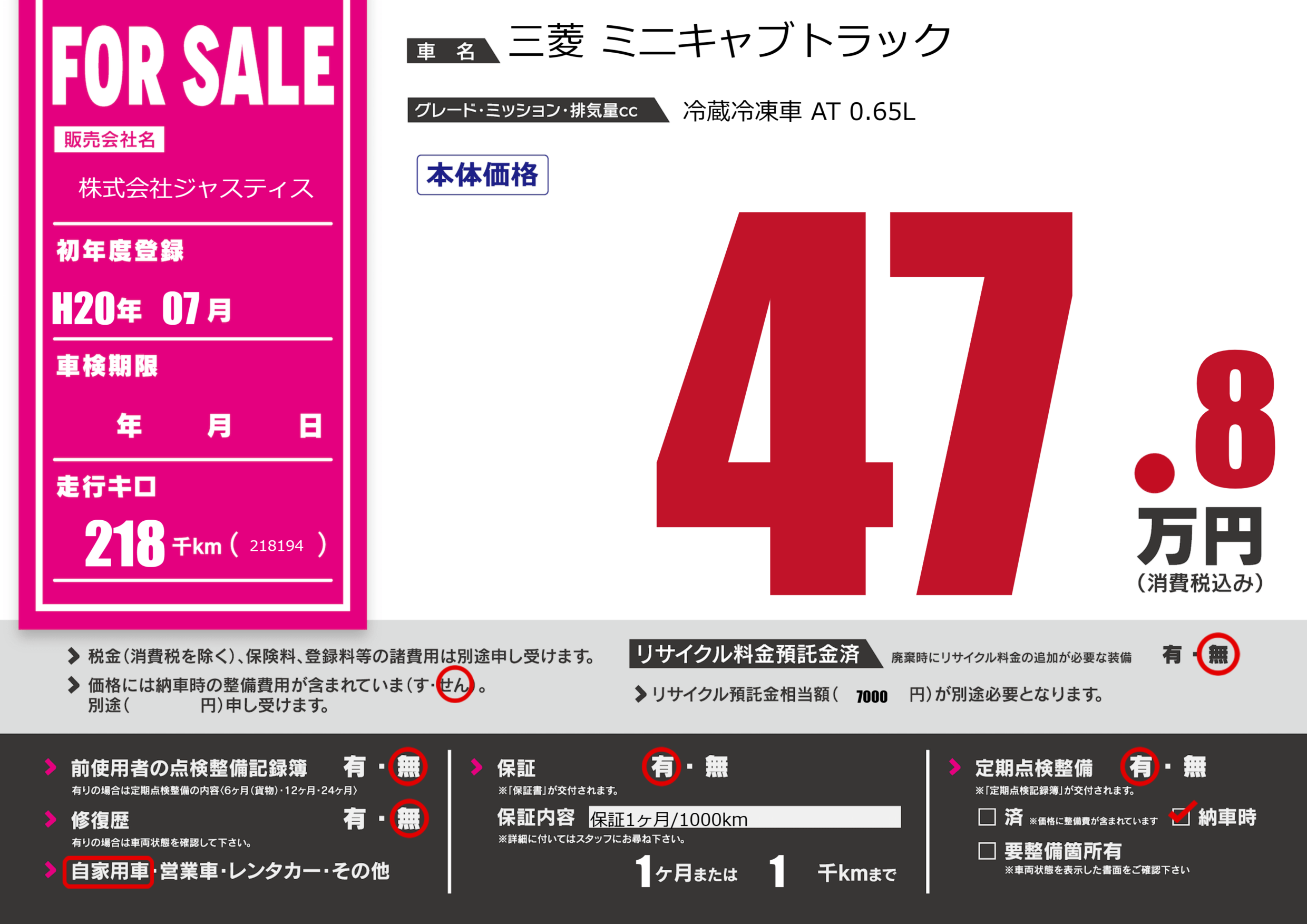 | 定期点検整備 | 定期点検整備あり 納車時あり | ||