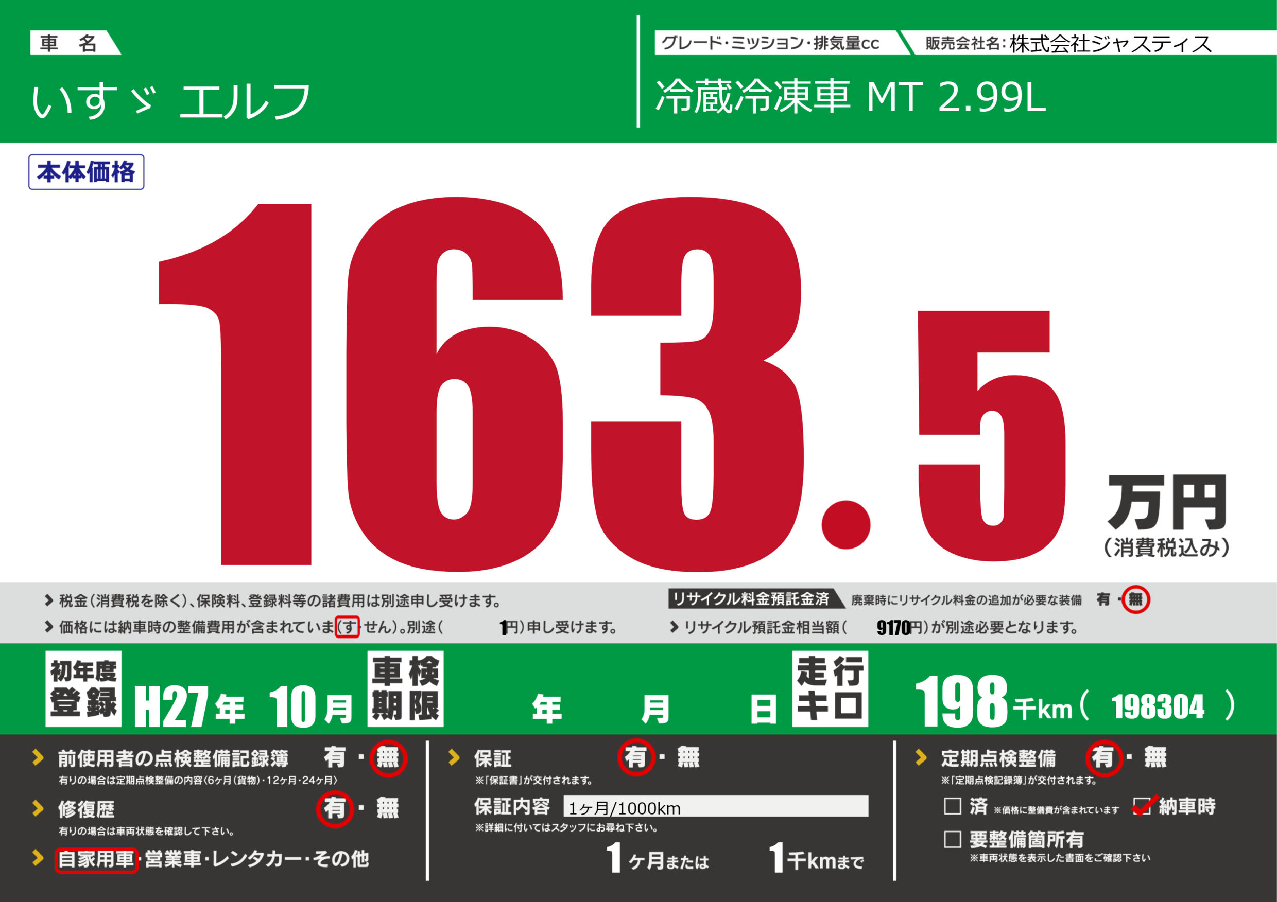 | 車名 | いすゞ エルフ | グレード ミッション 排気量 |