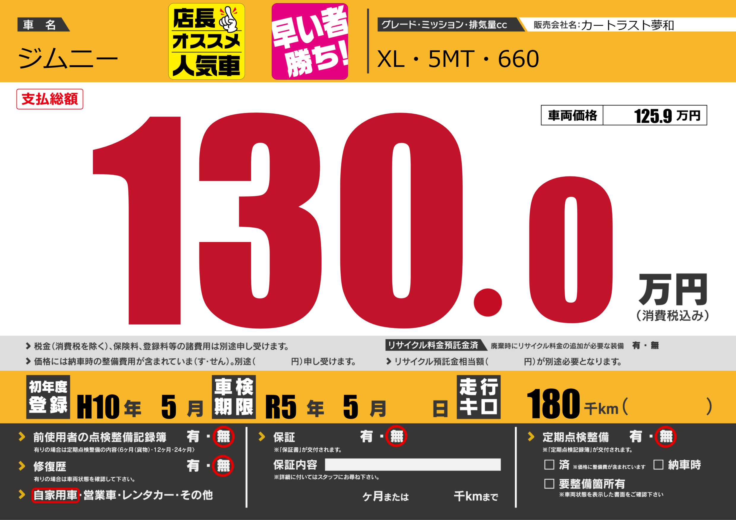 なし | 車検制限 | R5年5月---月 |