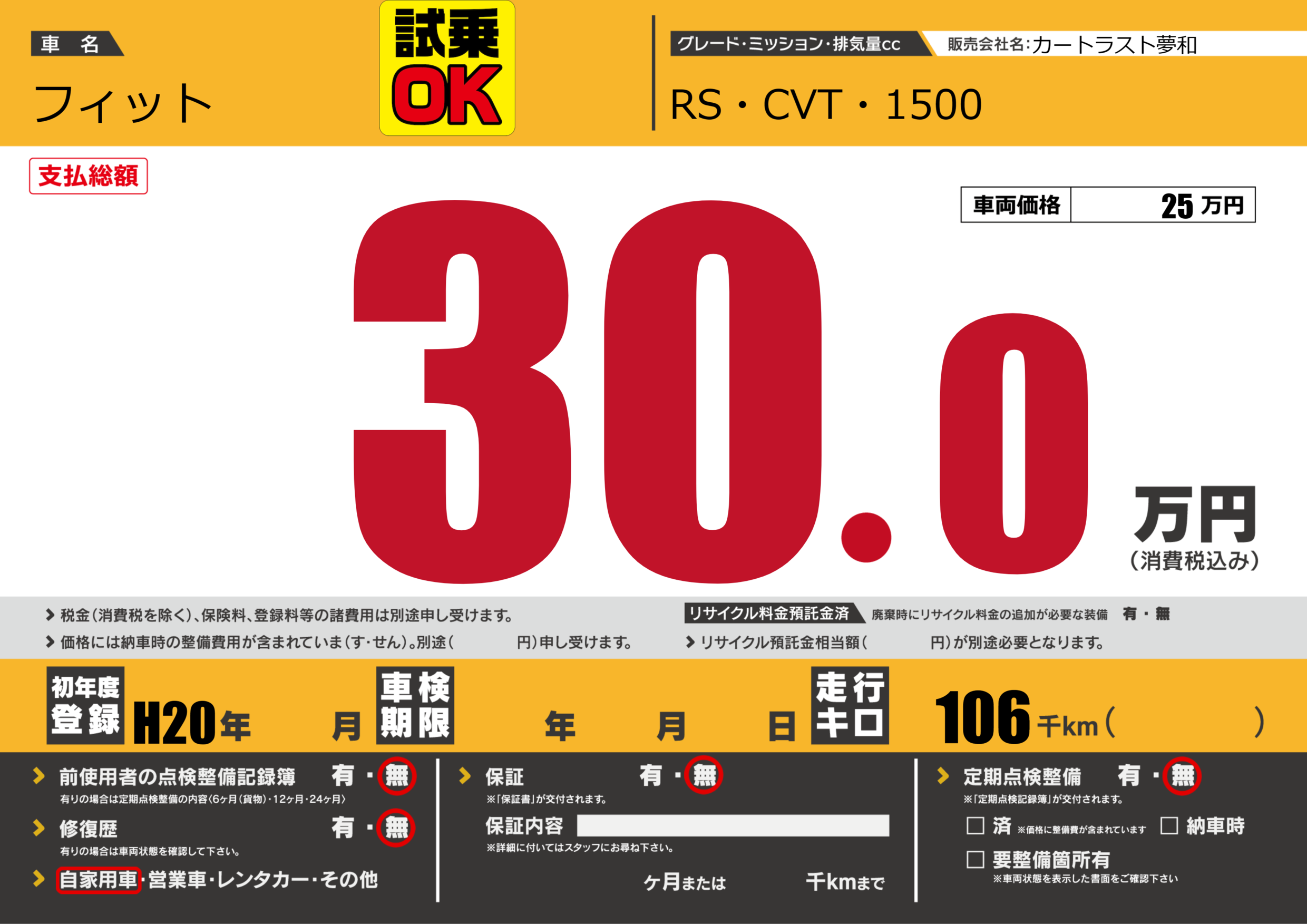 | 車名 | フィット | グレード ミッション 排気量 |