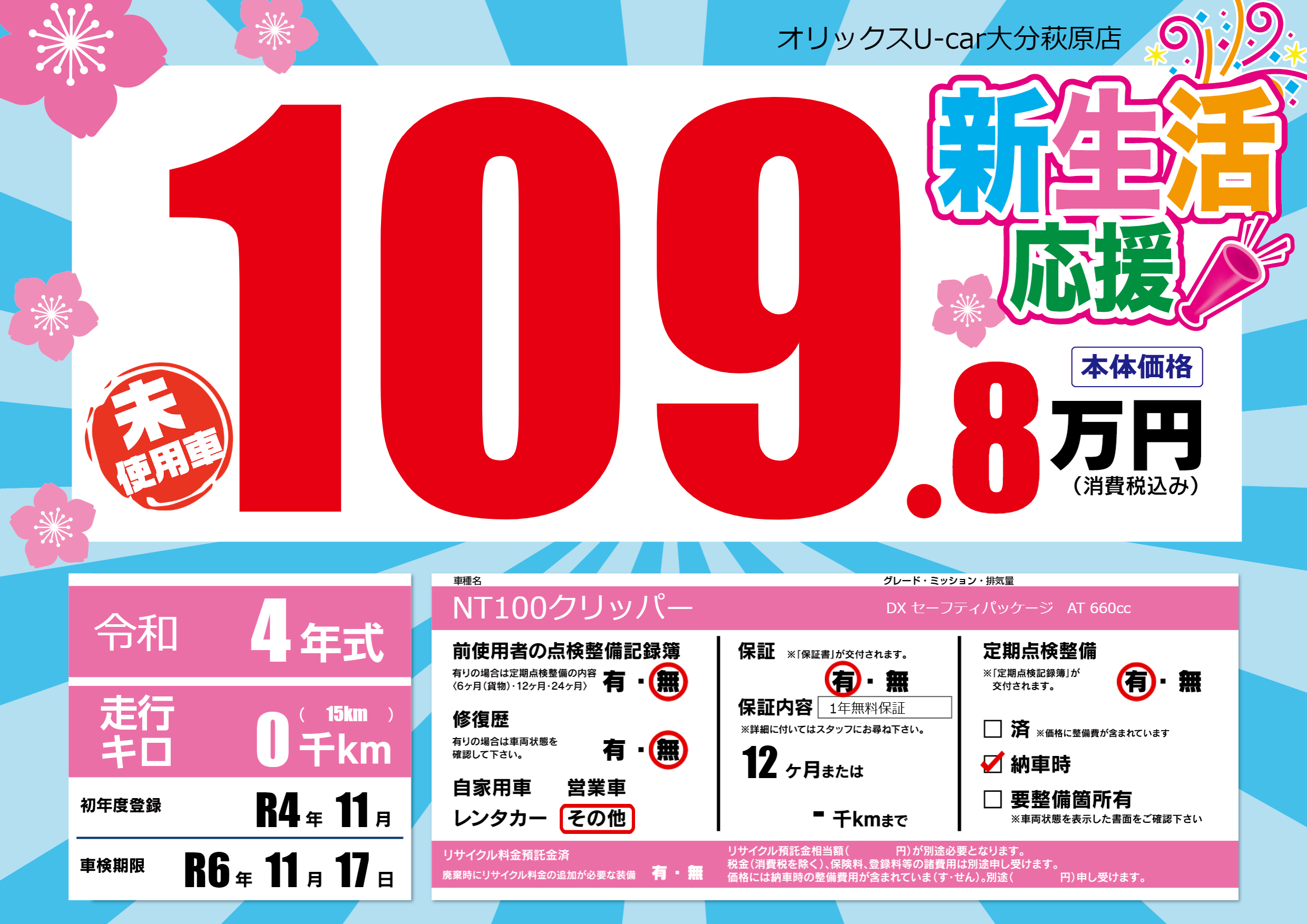| 車名 | NT100クリッパー | グレード ミッション 排気量 |