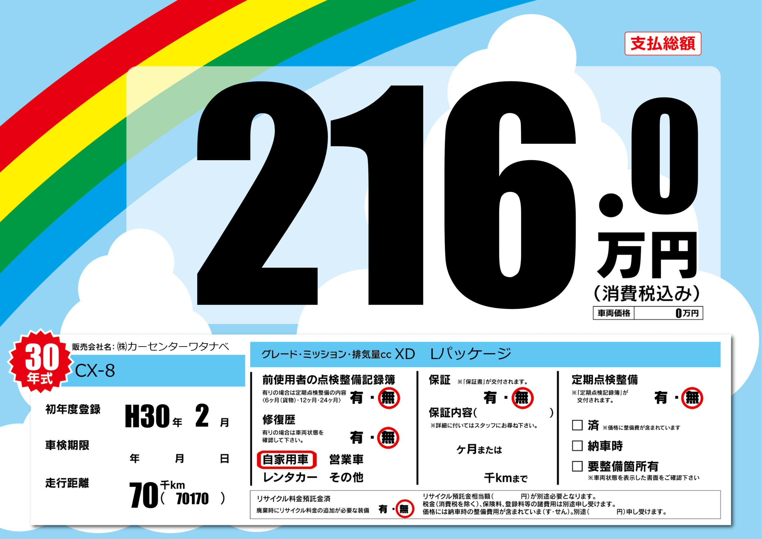 | 車名 | CX-8 | グレード ミッション 排気量 |