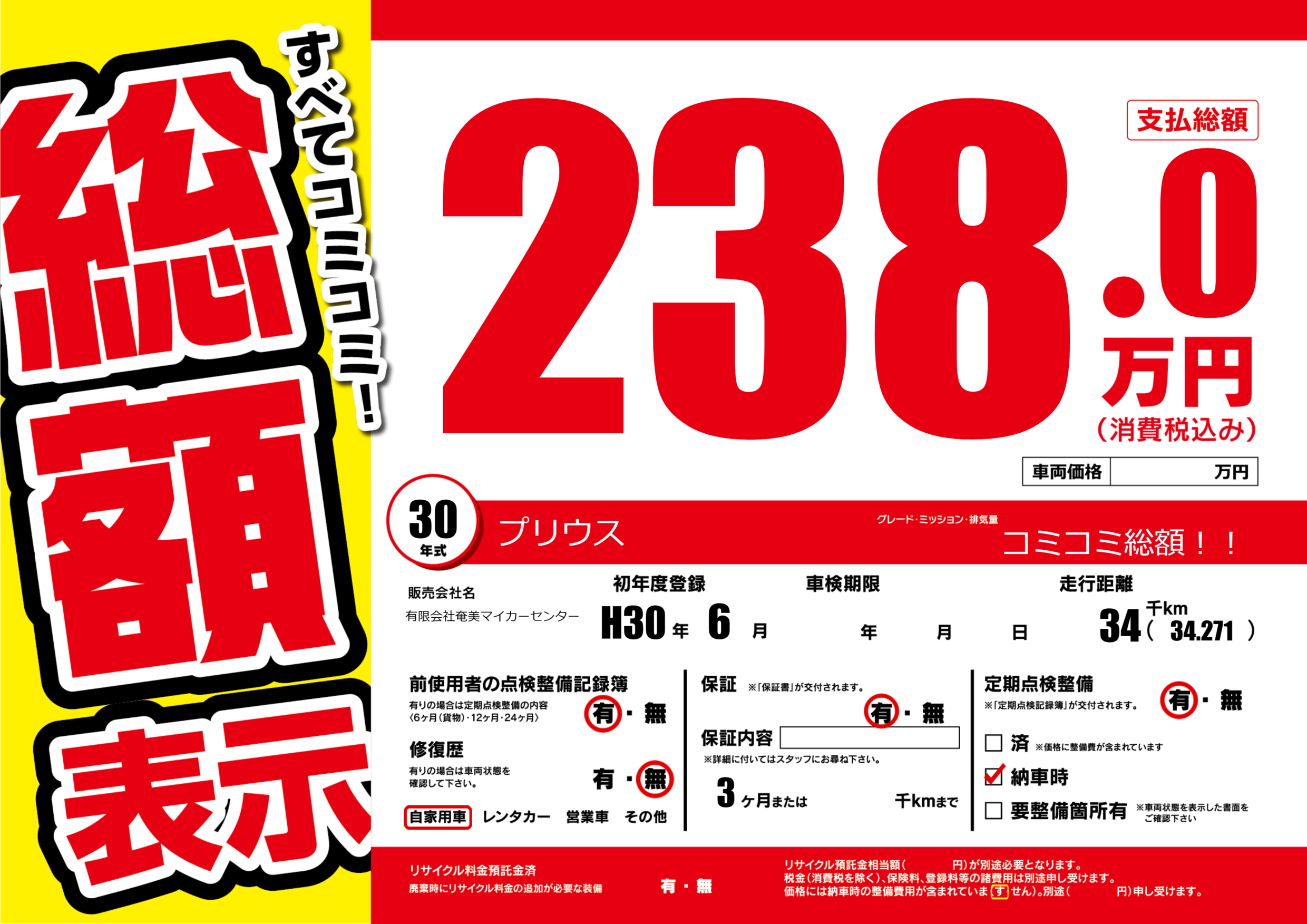 | 定期点検整備 | 定期点検整備あり 納車時あり | ||