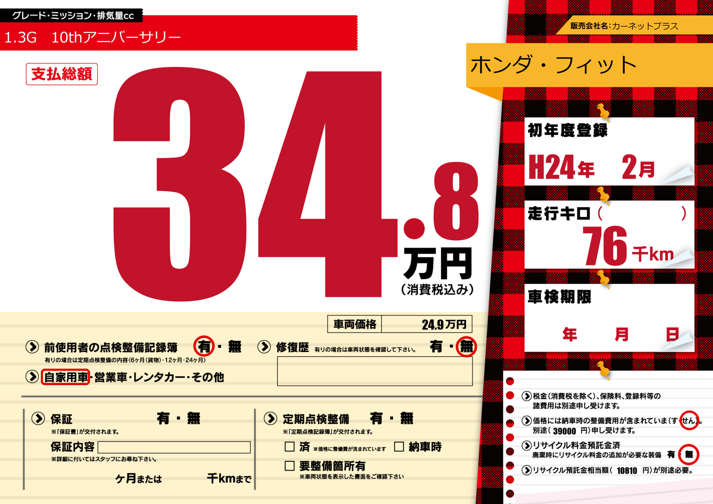 | 車検制限 | - 年 - 月 - 日 | ||