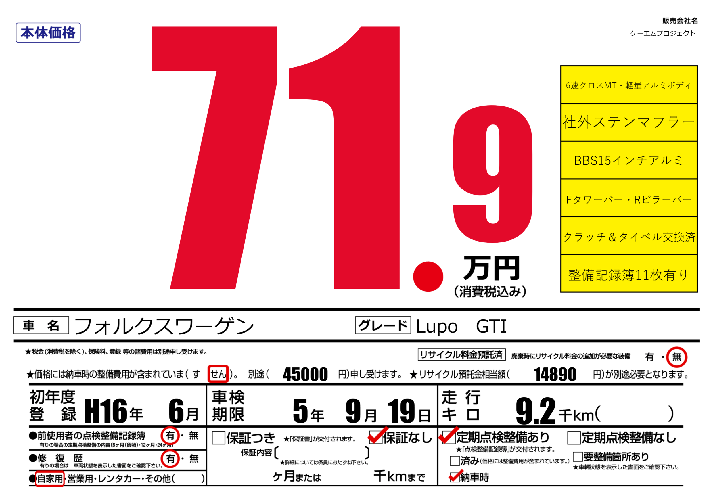 | 車検制限 | 5年 9月 19日 | ||