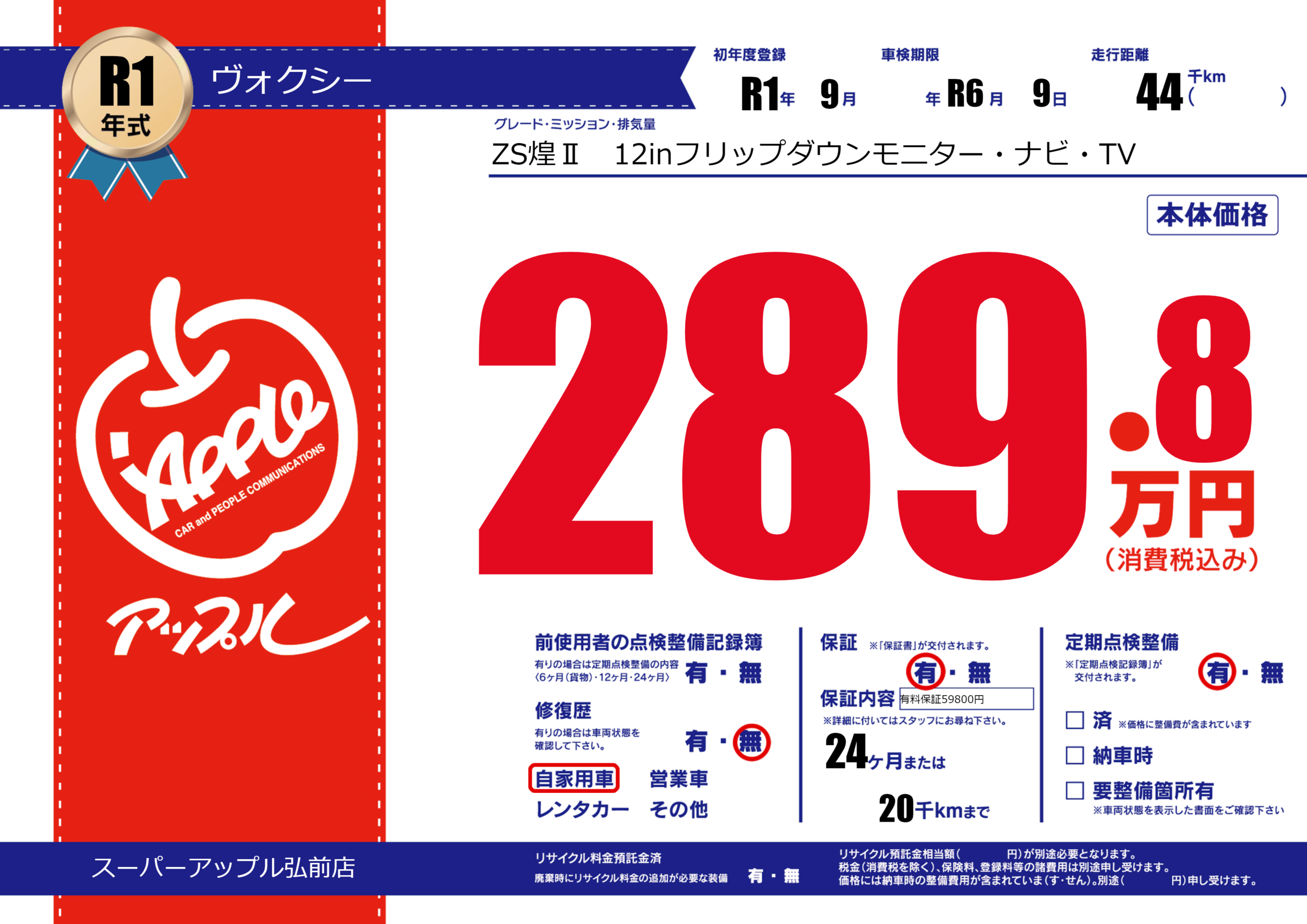 | 走行キロ | 4.4万km | 初年度登録 | R1年9月 |