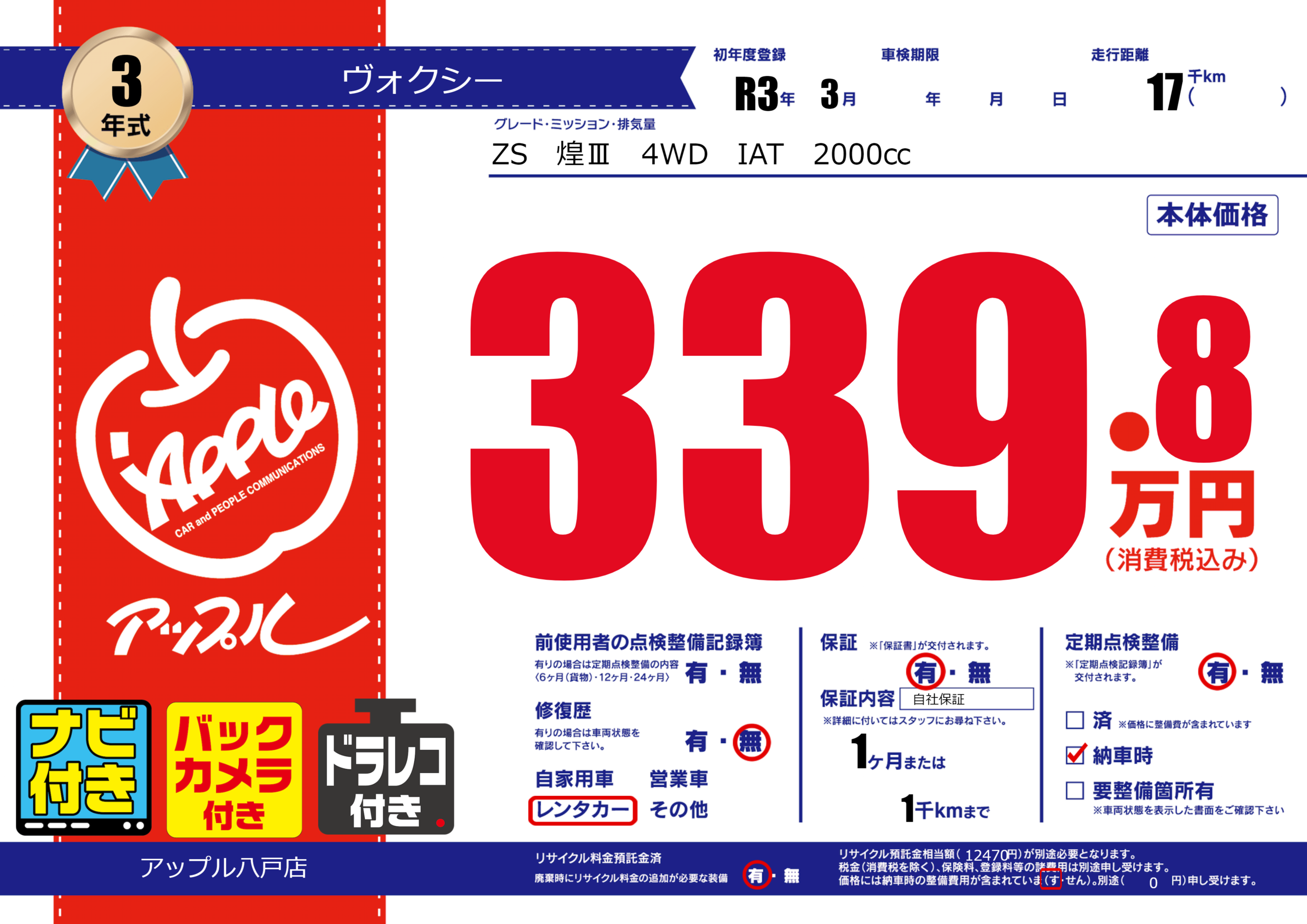 | 走行キロ | 1.7万km | 初年度登録 | R3年3月 |