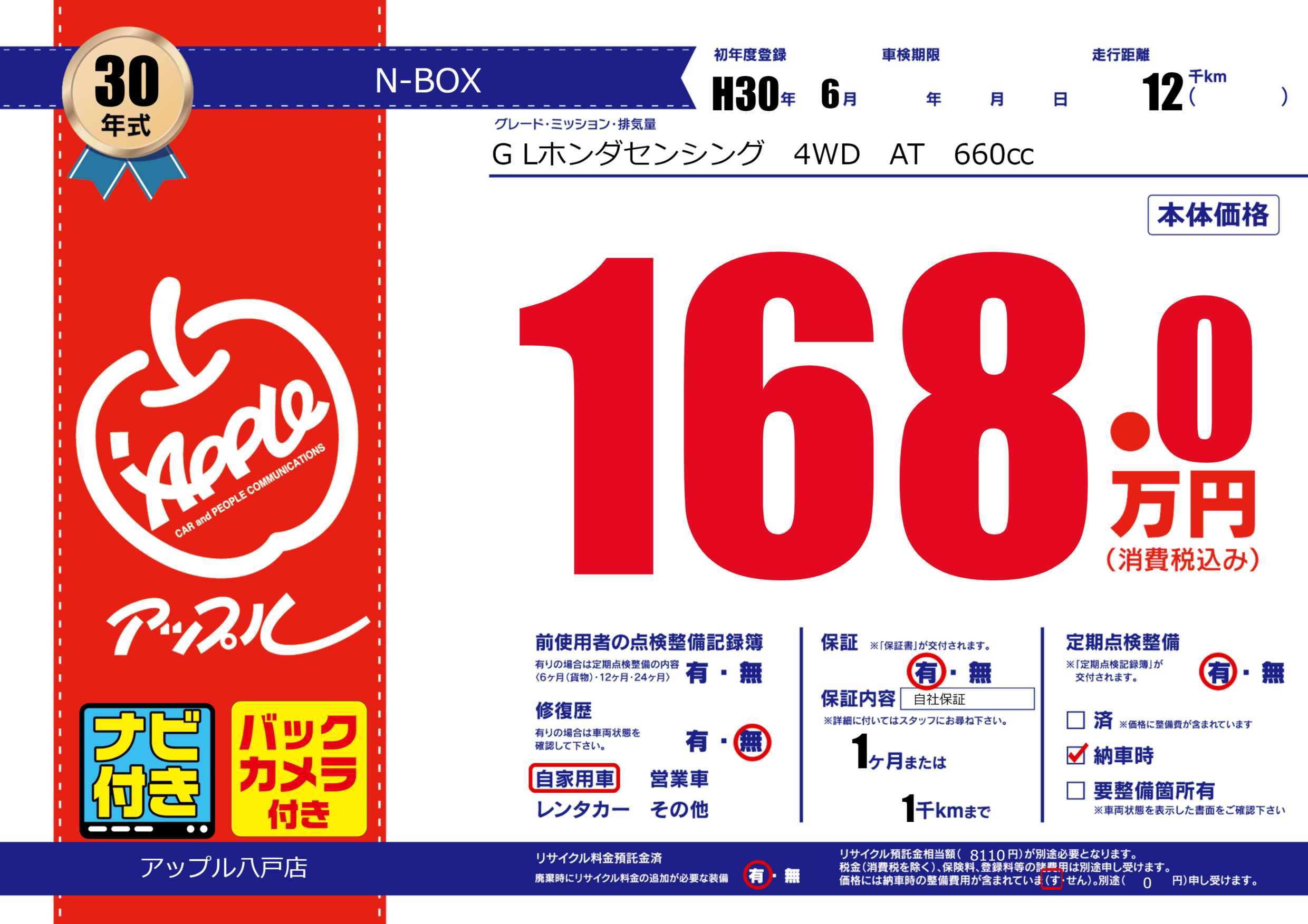 | 定期点検整備 | 定期点検整備あり 納車時あり | ||