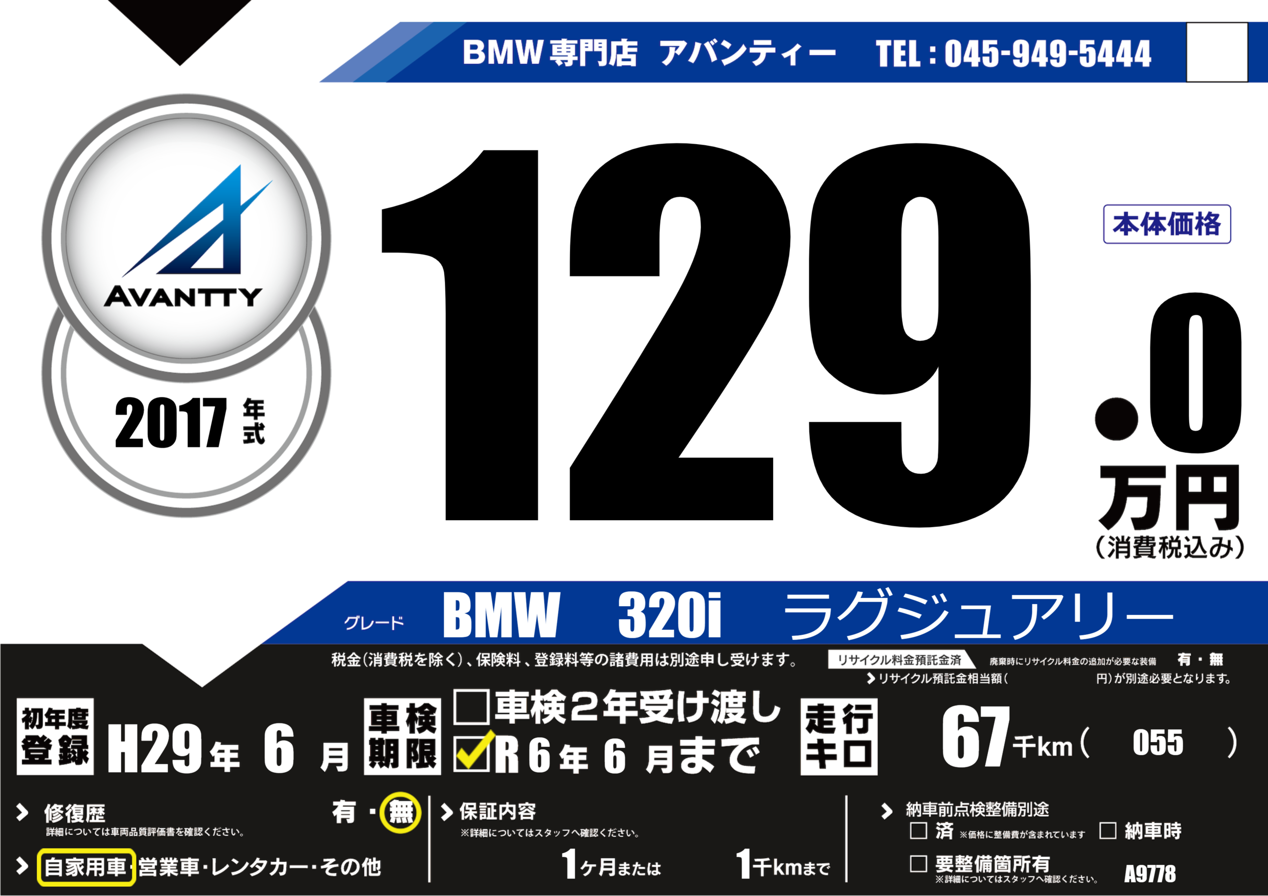 | 走行キロ | 6.7万km | 初年度登録 | H29年6月 |