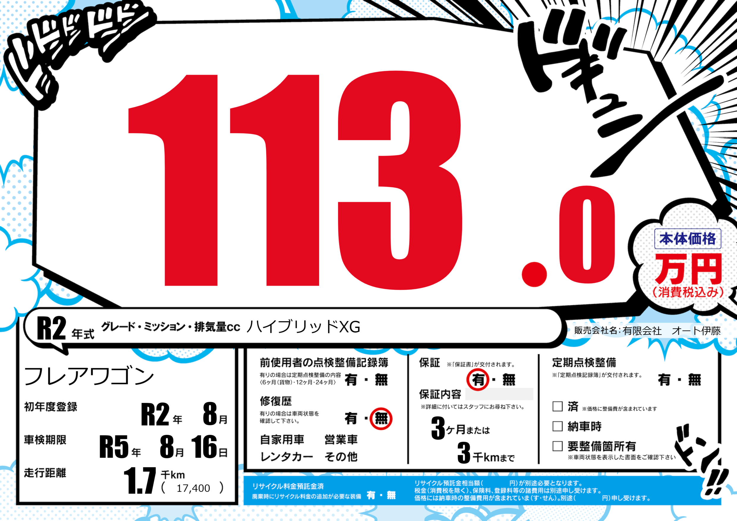 | 車名 | フレアワゴン | グレード ミッション 排気量 |