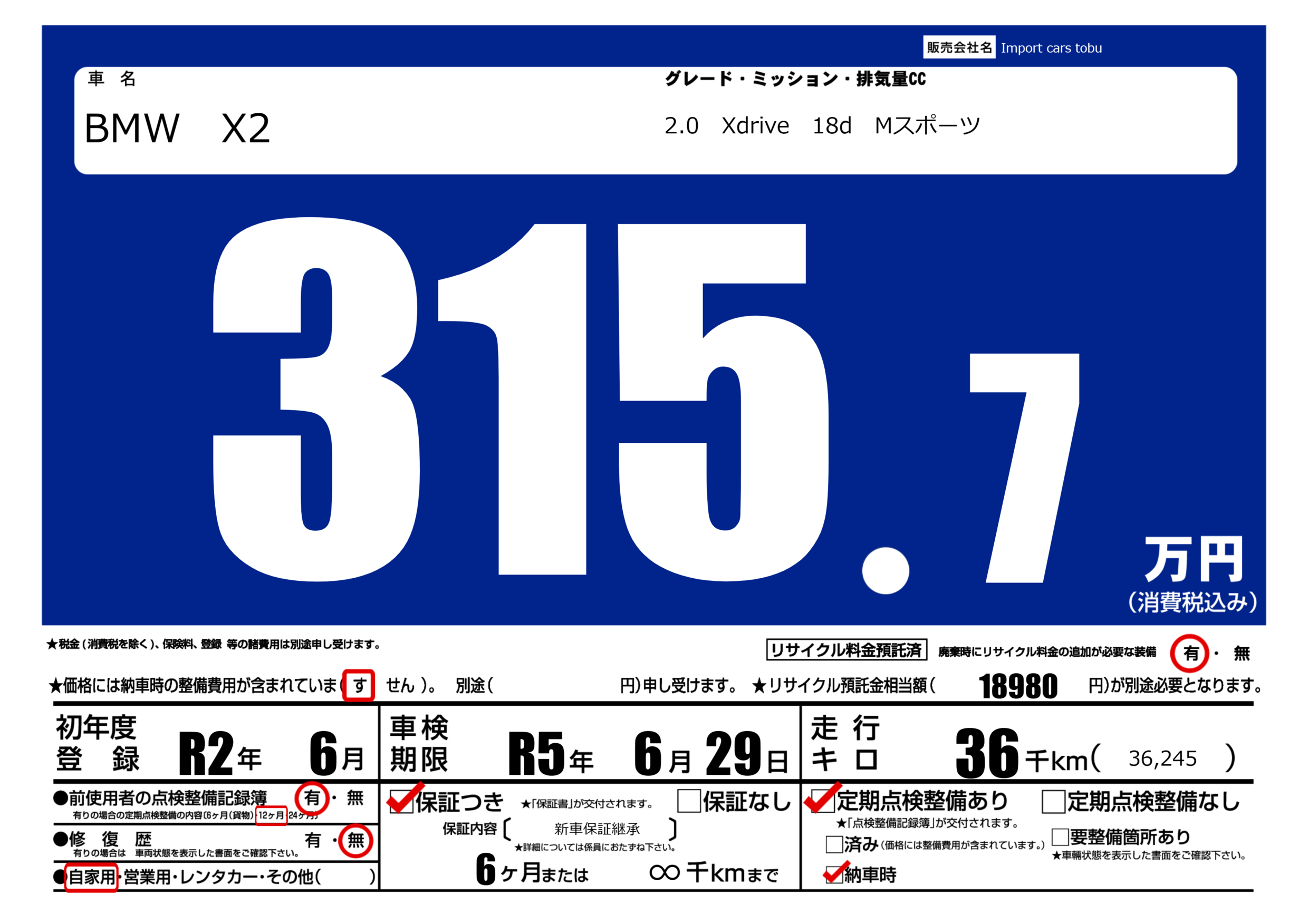 | 走行キロ | 3.6万km | ||