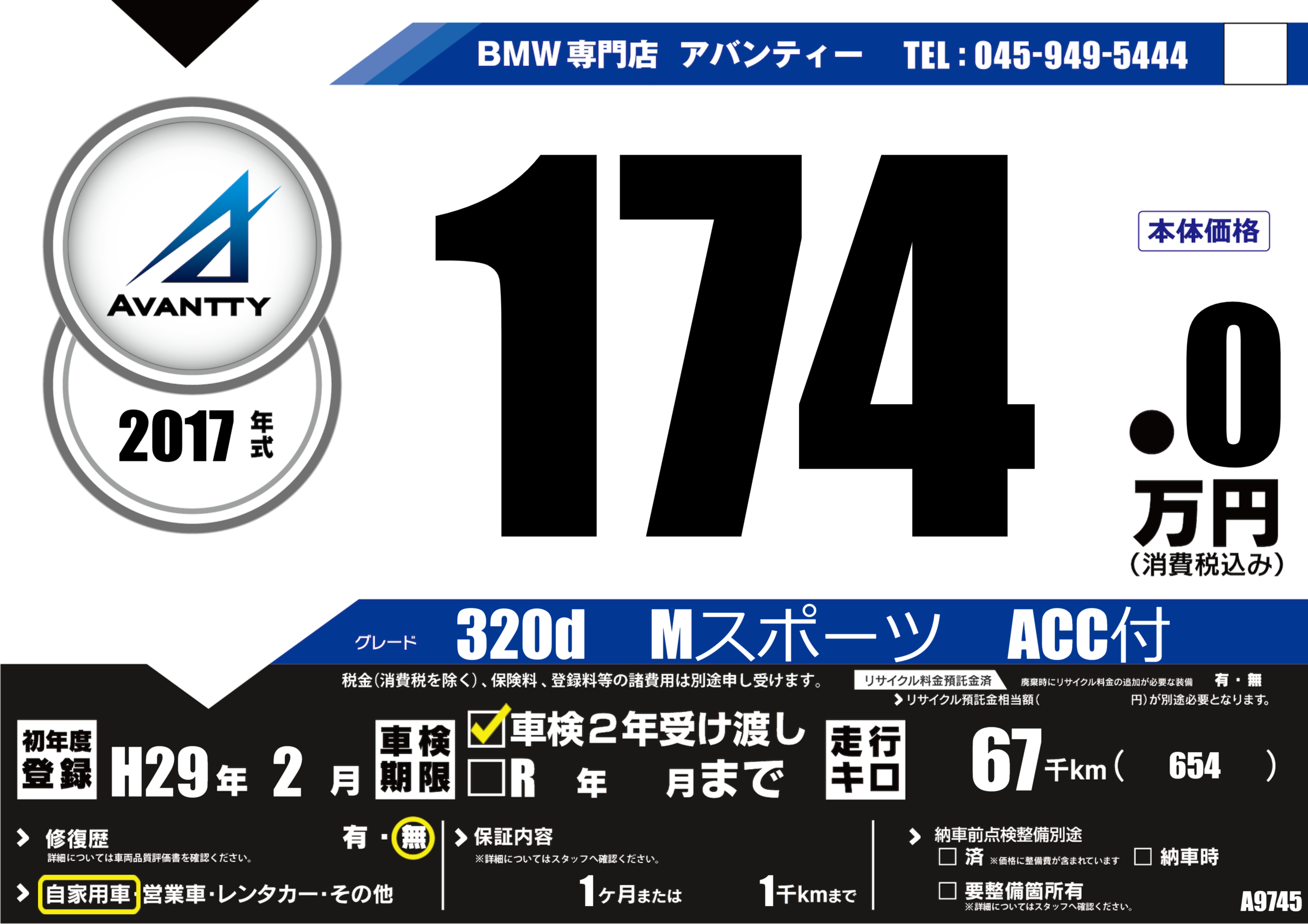 | 走行キロ | 6.7万km | 初年度登録 | H29年2月 |