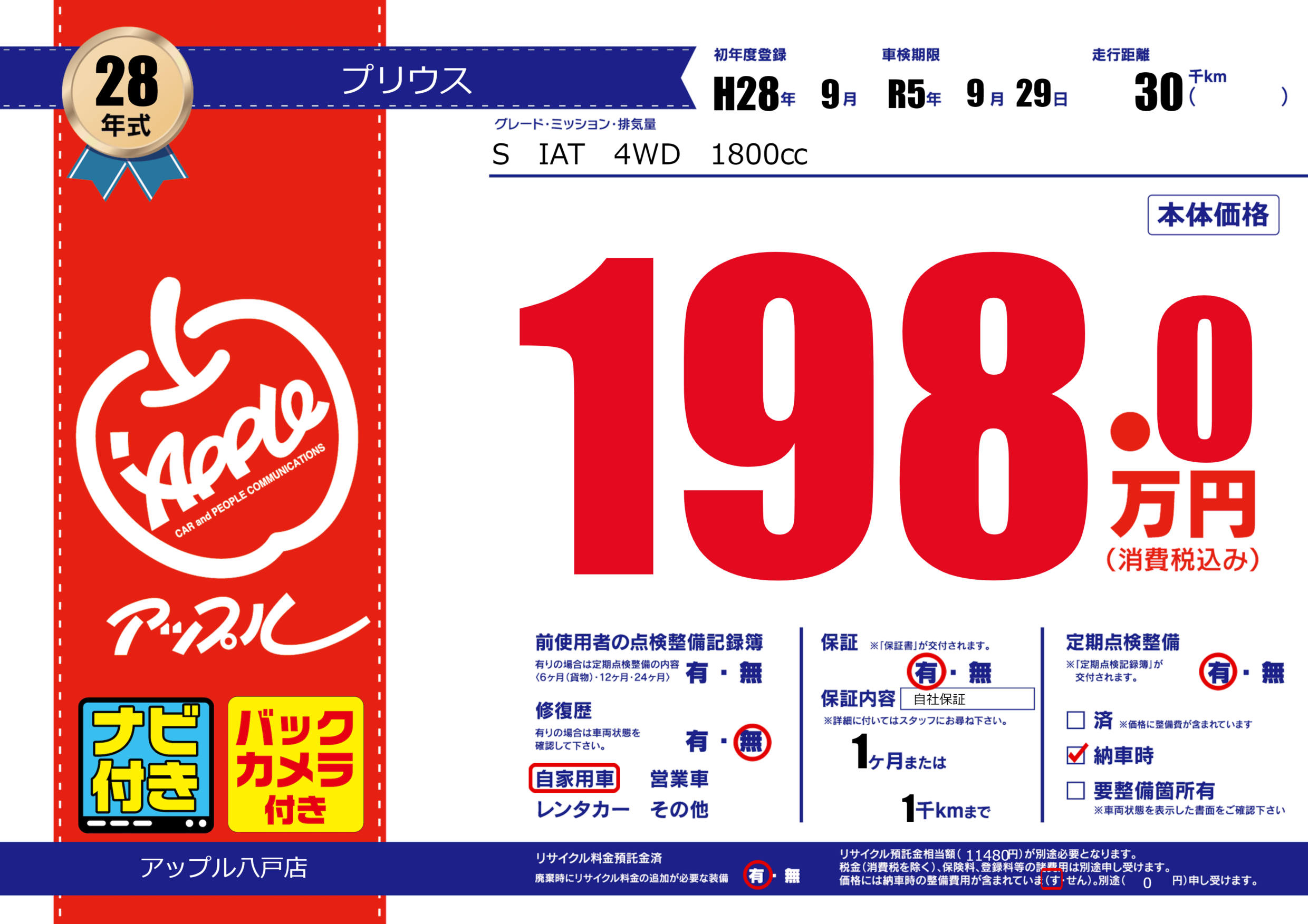 | 車名 | プリウス | グレード ミッション 排気量 |