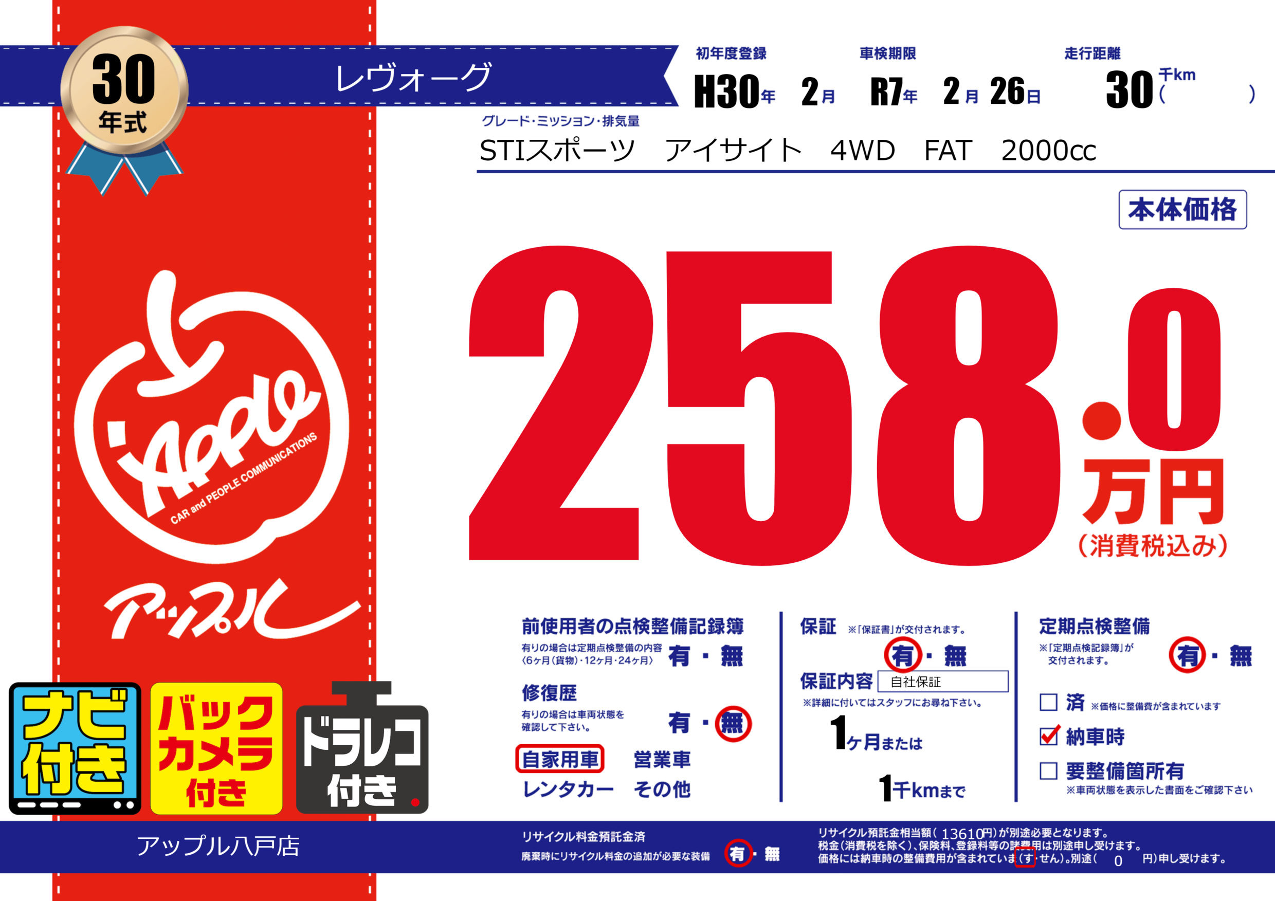 STIスポーツ アイサイト 4WD FAT 2000㏄ |