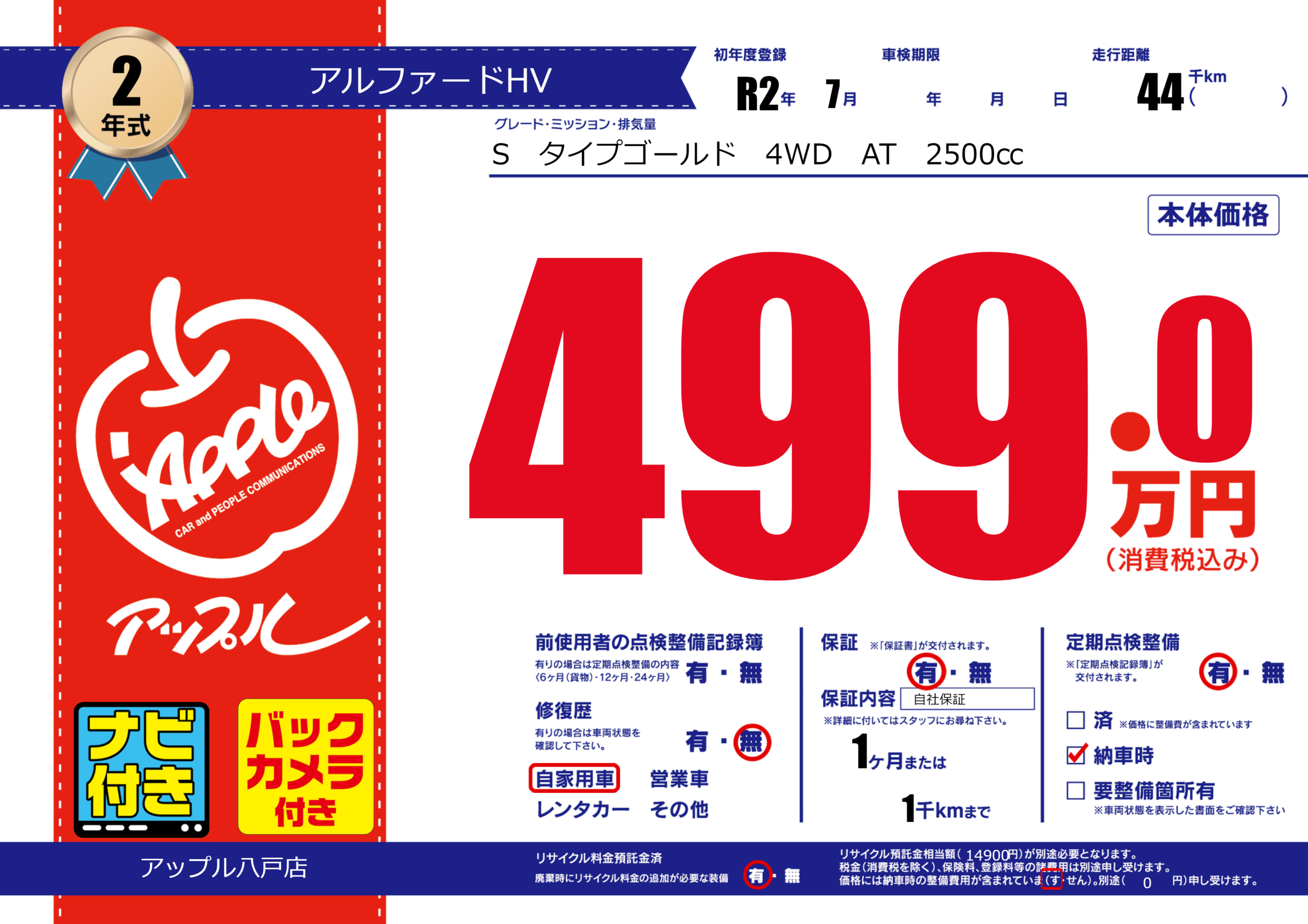 | 走行キロ | 4.4万km | 初年度登録 | R2年7月 |