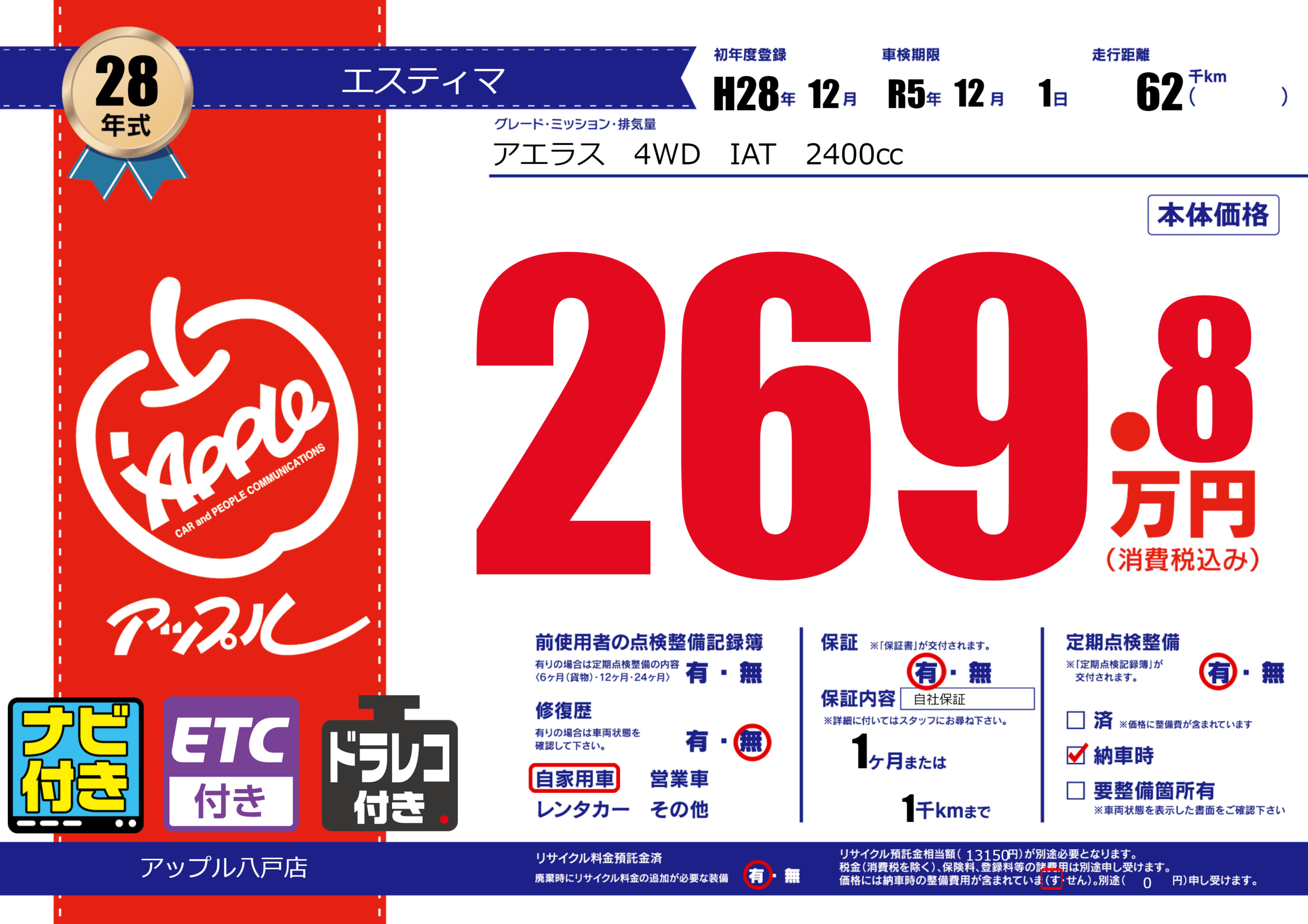 | 車名 | エスティマ | グレード ミッション 排気量 |