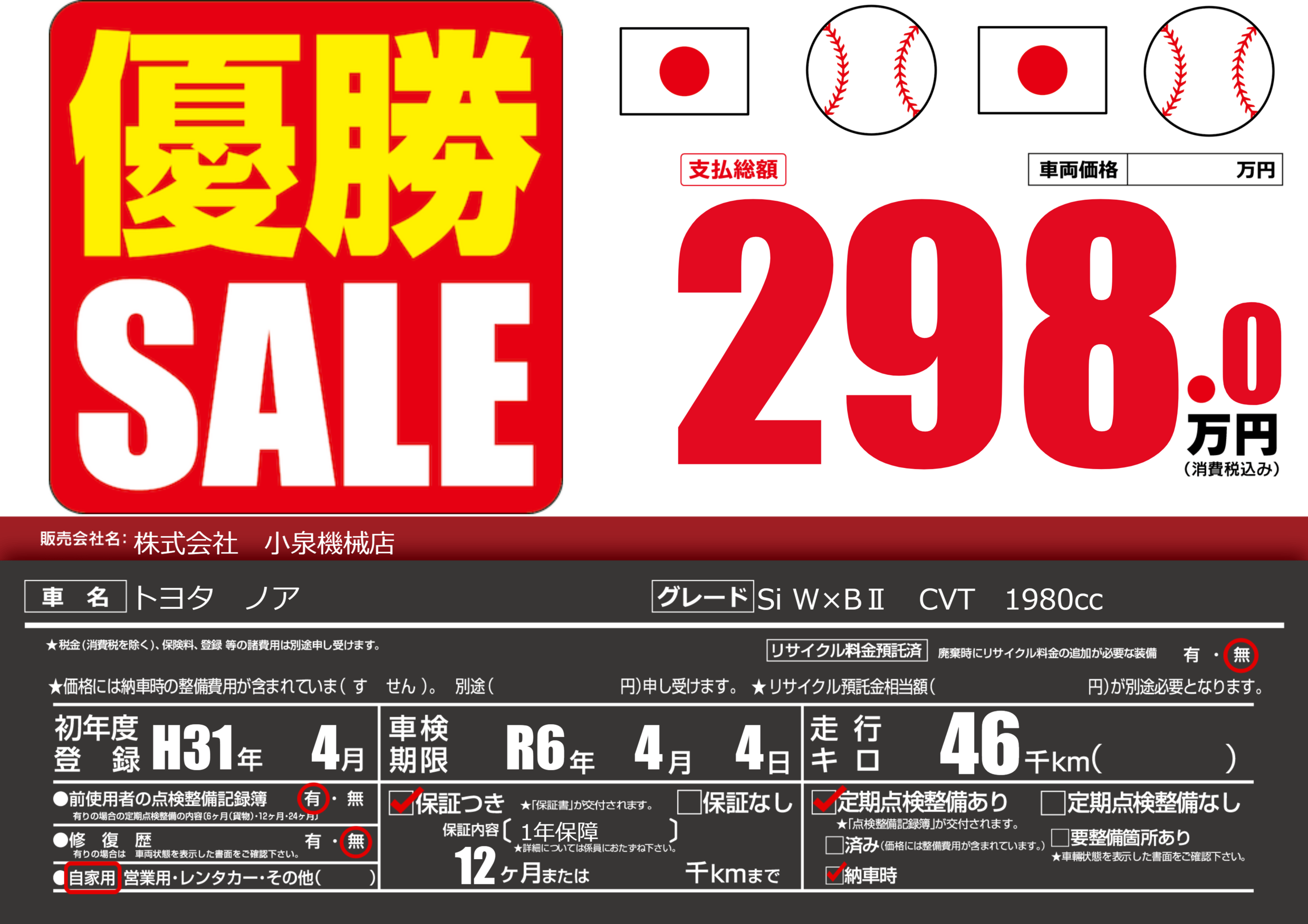 保証付き 保証内容(1年保障) 12ヶ月または()千kmまで |