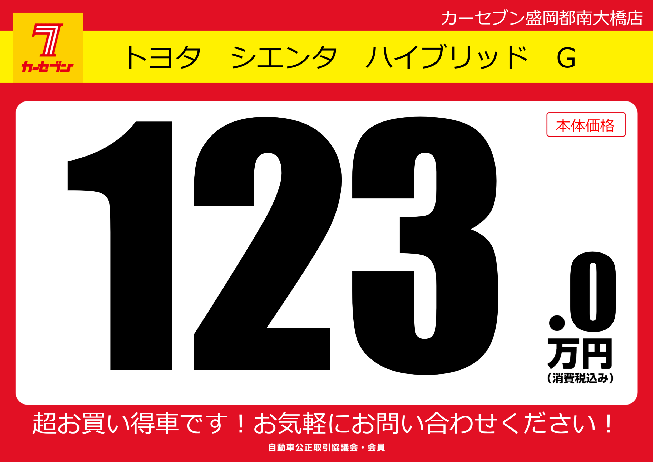 | 車名 | トヨタ シエンタ ハイブリッド G | グレード ミッション 排気量 |