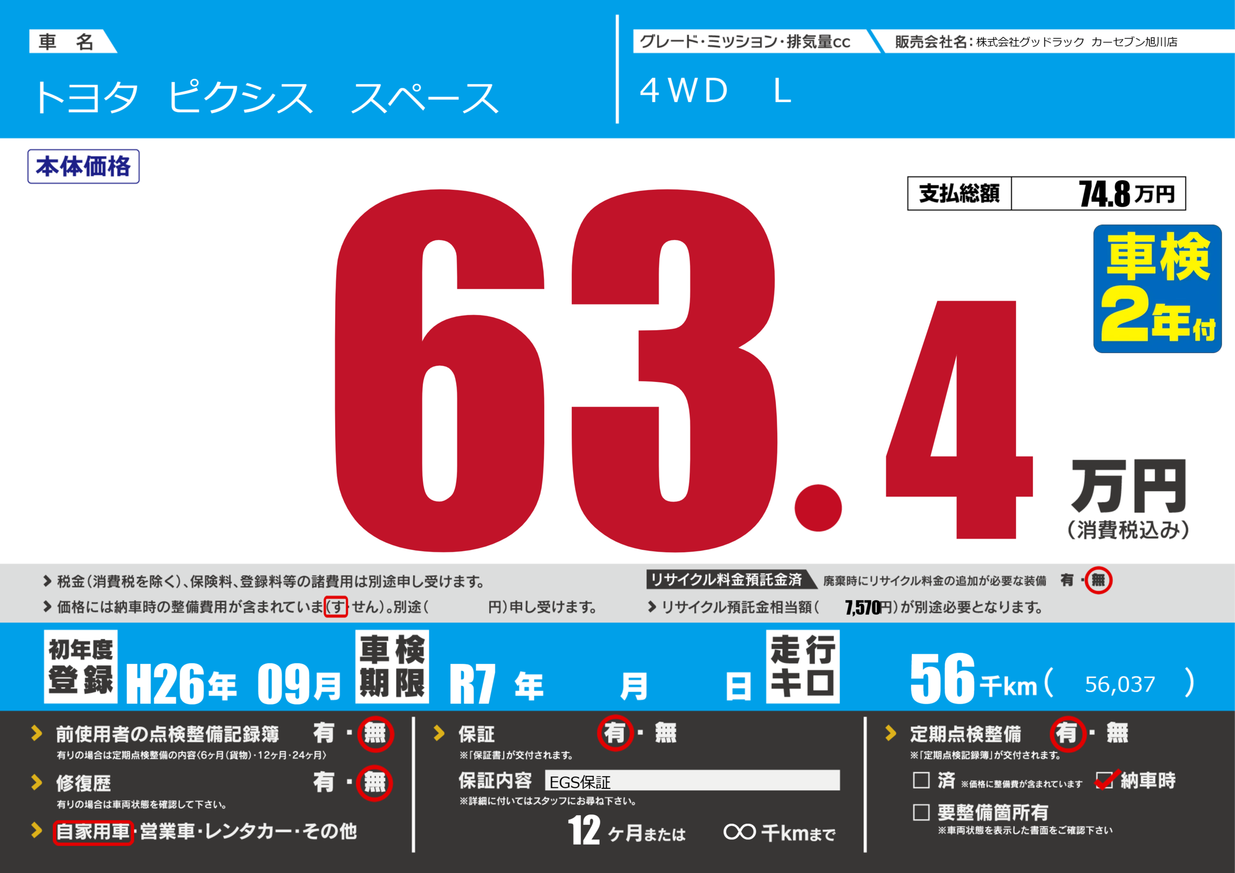 | 車検制限 | R7年 - 月 - 日 | ||