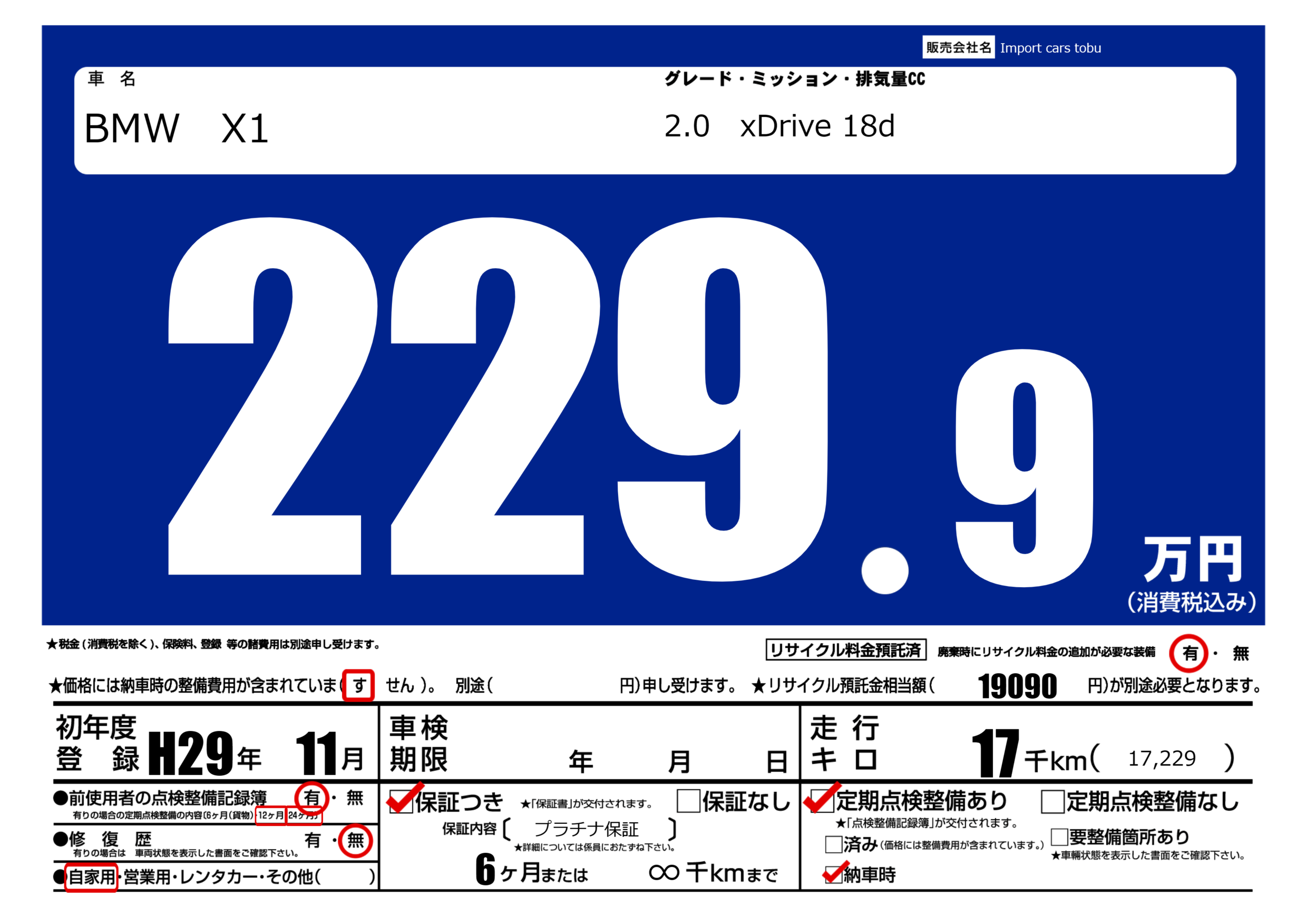 | 車名 | BMW X1 | グレード ミッション 排気量 |