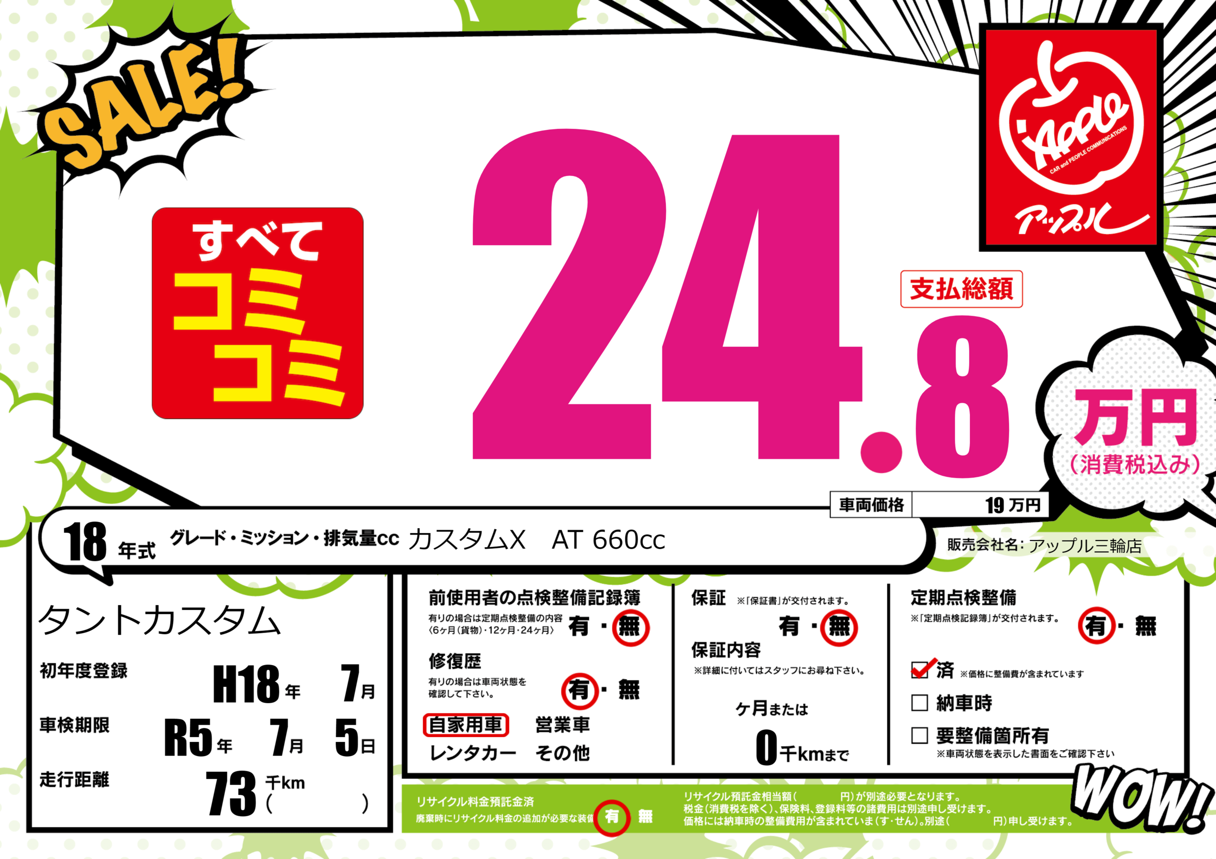 | 定期点検整備 | 定期点検整備あり 定期点検整備済み | ||