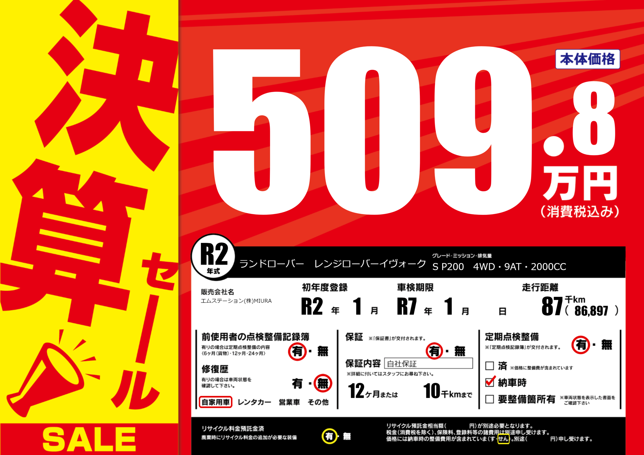 | 車検制限 | R7年 1月 - 日 | ||
