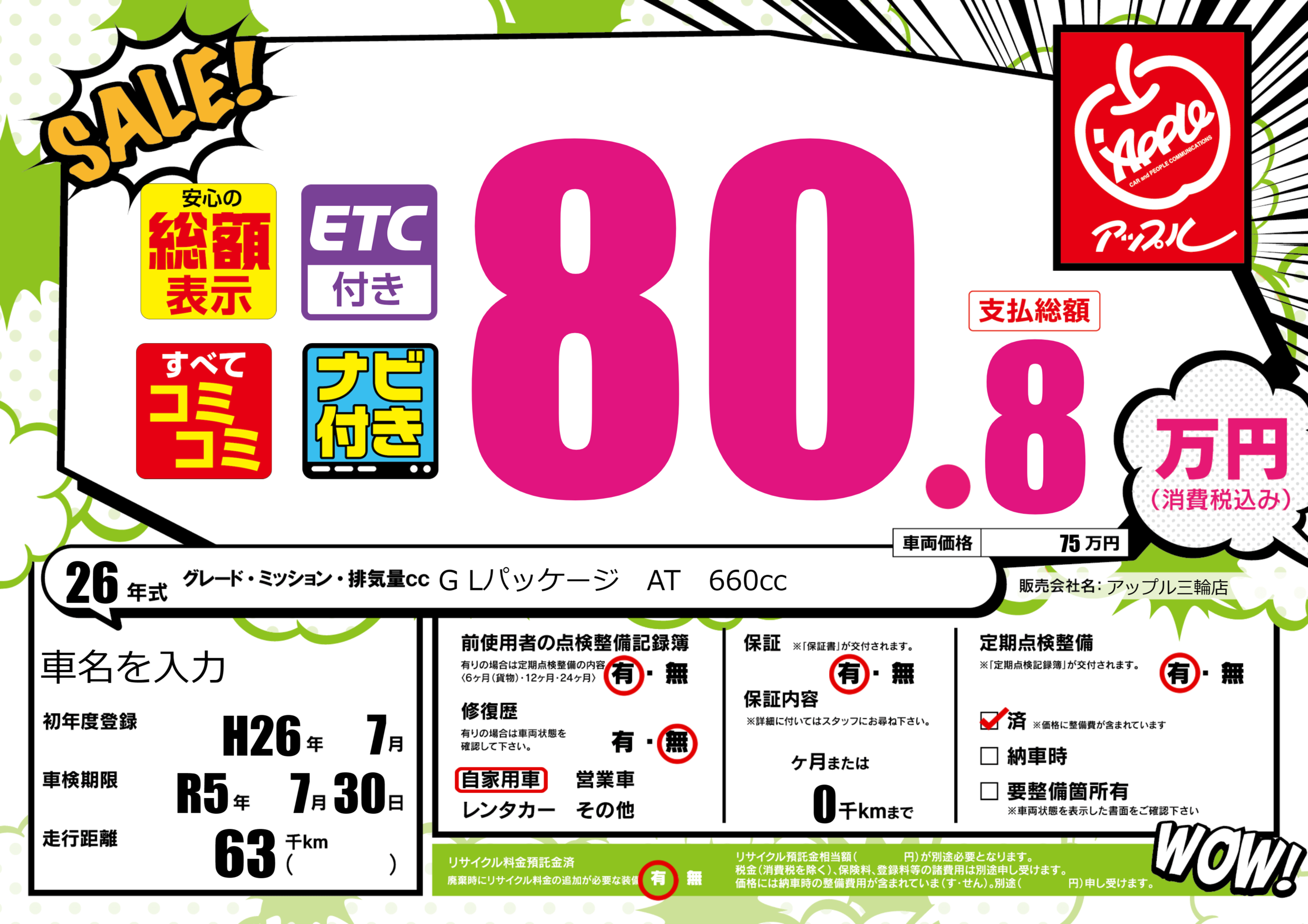 | 定期点検整備 | 定期点検整備あり 定期点検整備済み | ||