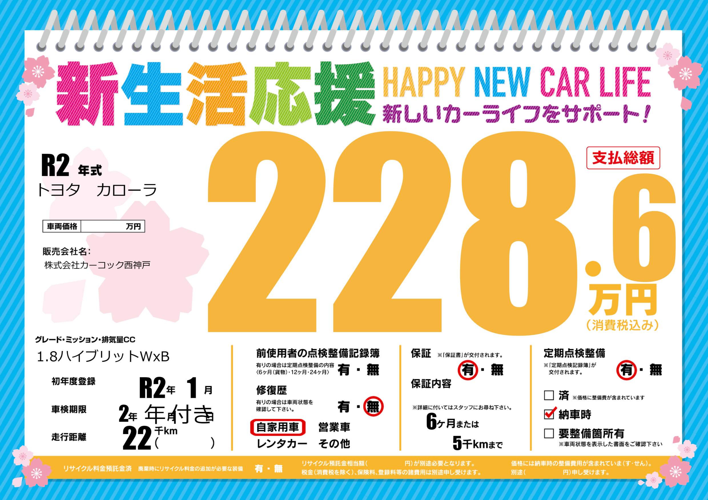| 車検制限 | 2年 年月 付き日 | ||