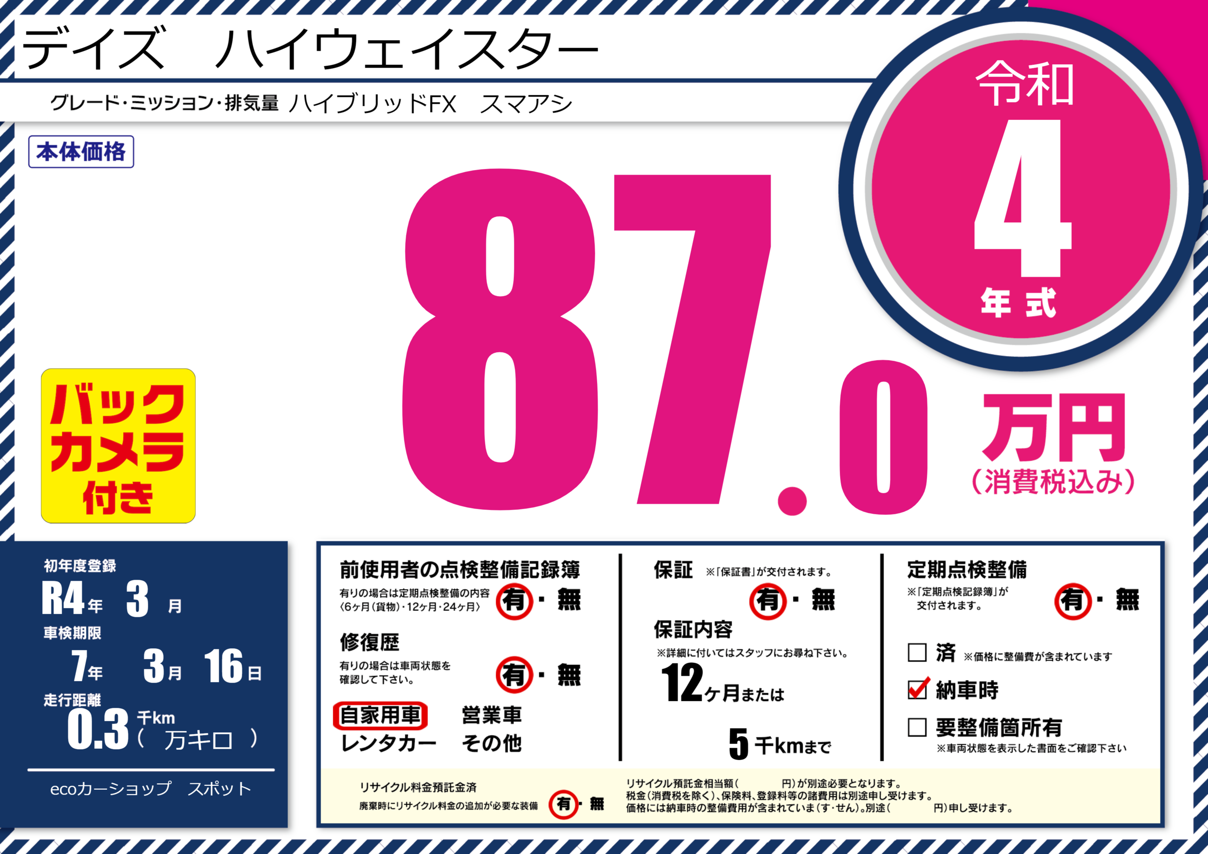 | 初年度登録 | R4年3月 | ||