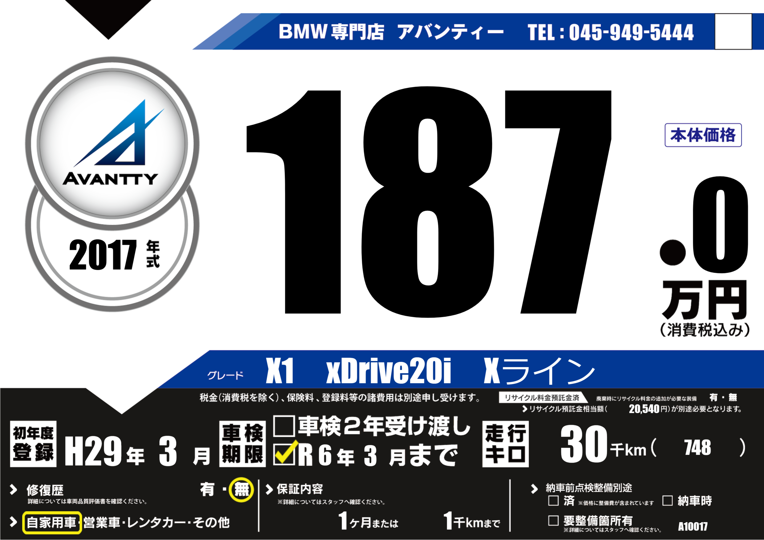 | 走行キロ | 3万km | 初年度登録 | H29年3月 |