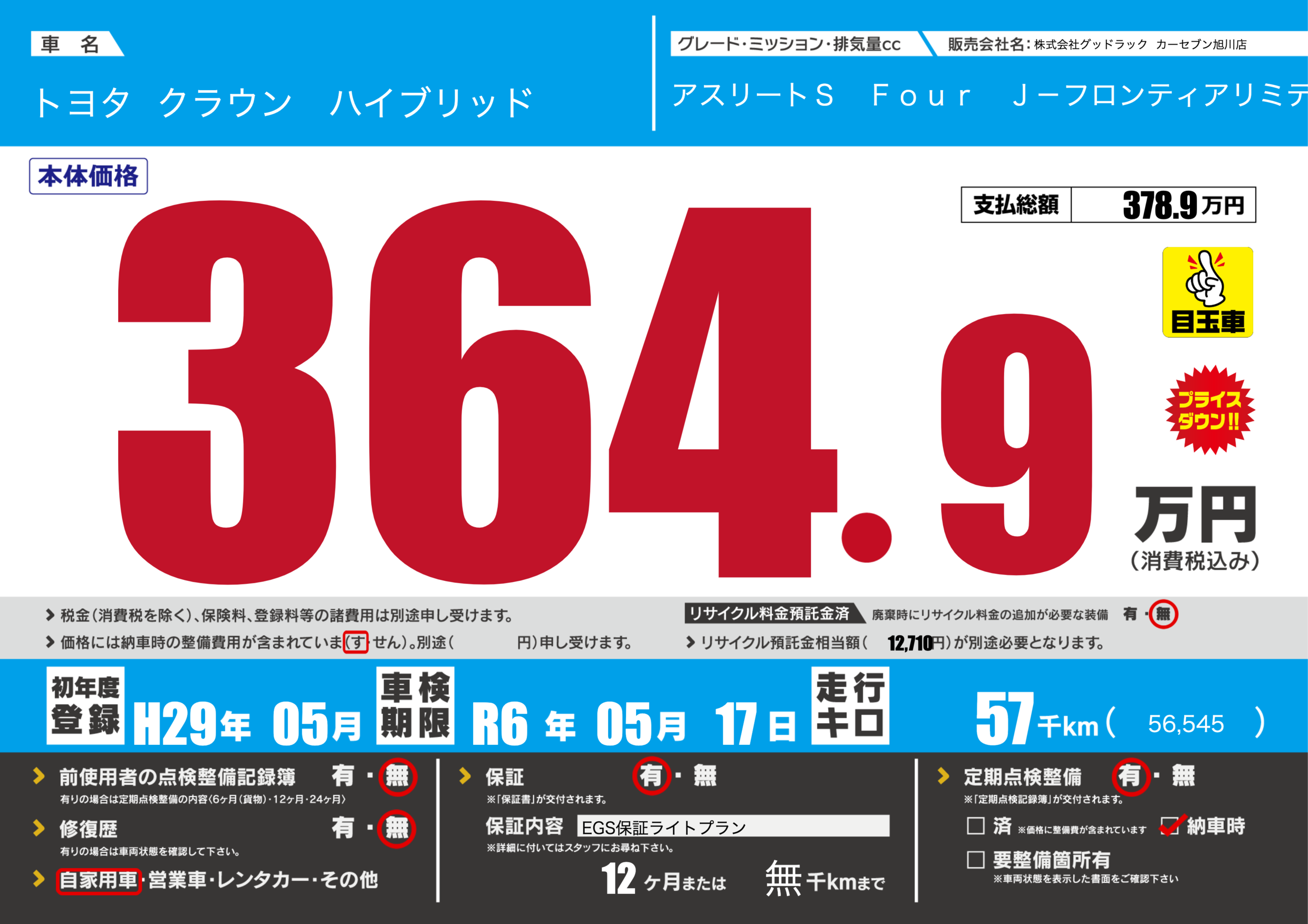 | 車名 | トヨタ クラウン ハイブリッド | グレード ミッション 排気量 |